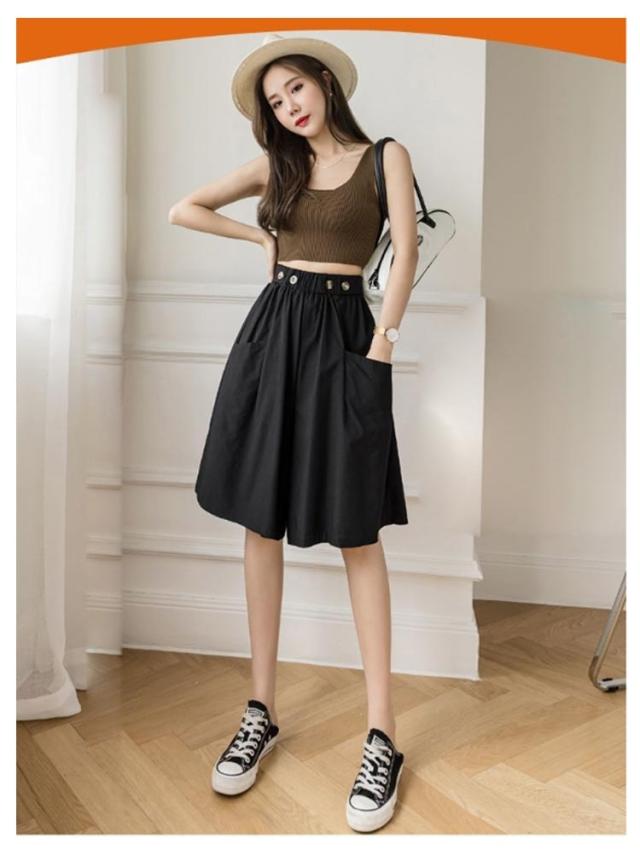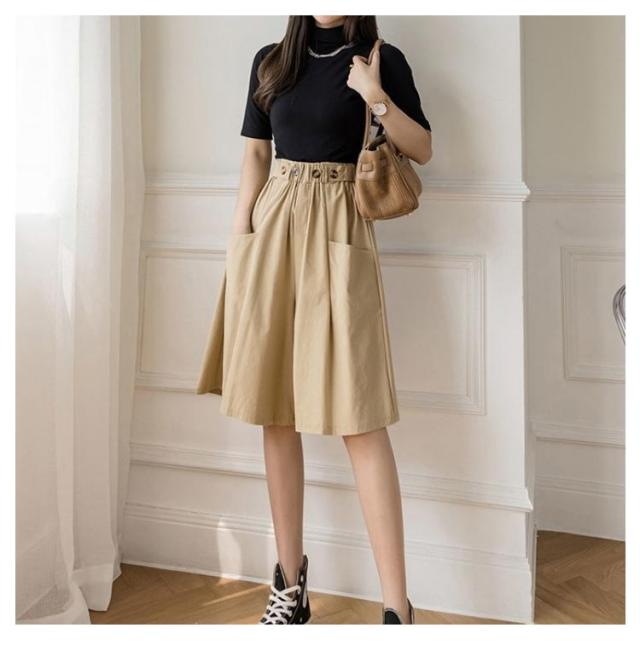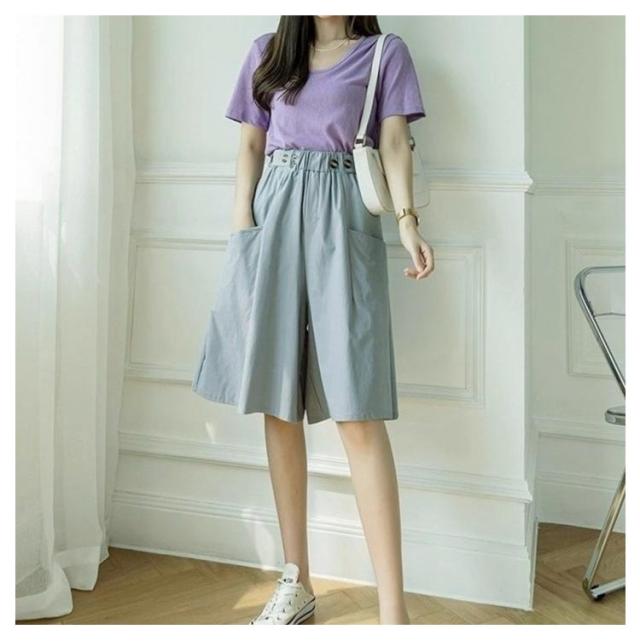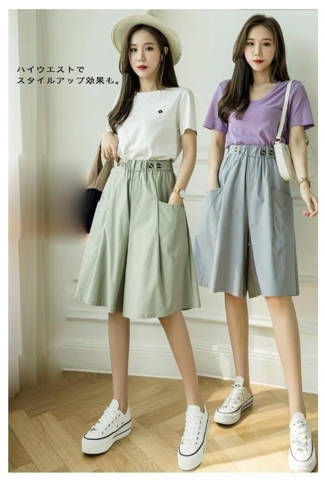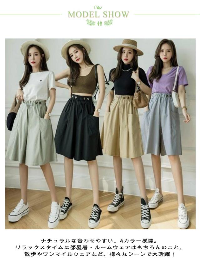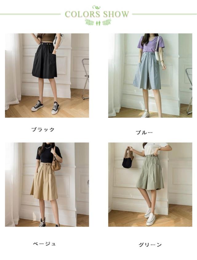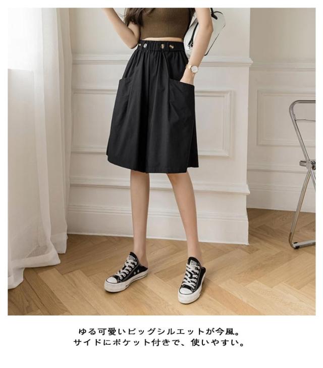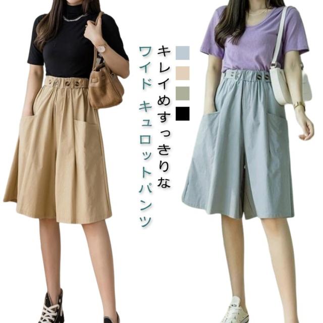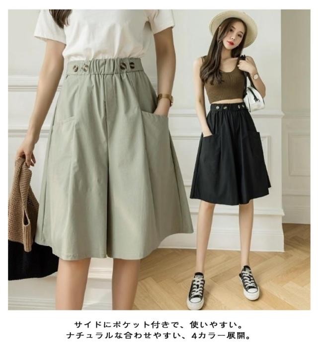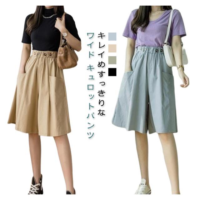 キュロットパンツ レディース ガウチョパンツ スカーチョ ハーフパンツ 膝丈 5分丈 パンツ ショートパンツ キュロットスカート 春 夏 春夏 薄手 短パン ボトムス ハイウエスト カジュアル ゆったり 大きいサイズ ウエストゴム Aライン ワイドパンツ 無地 ナチュラル