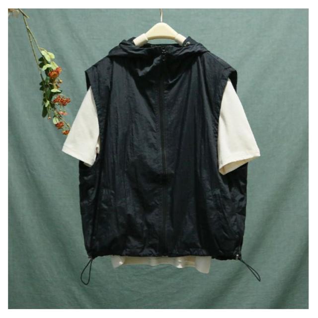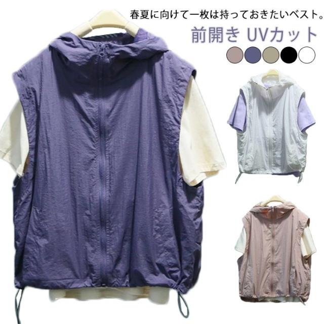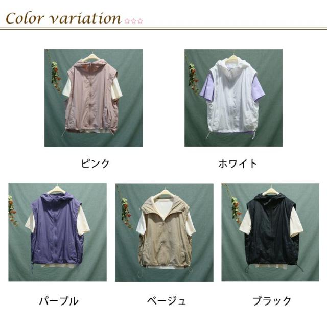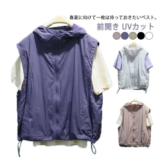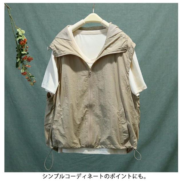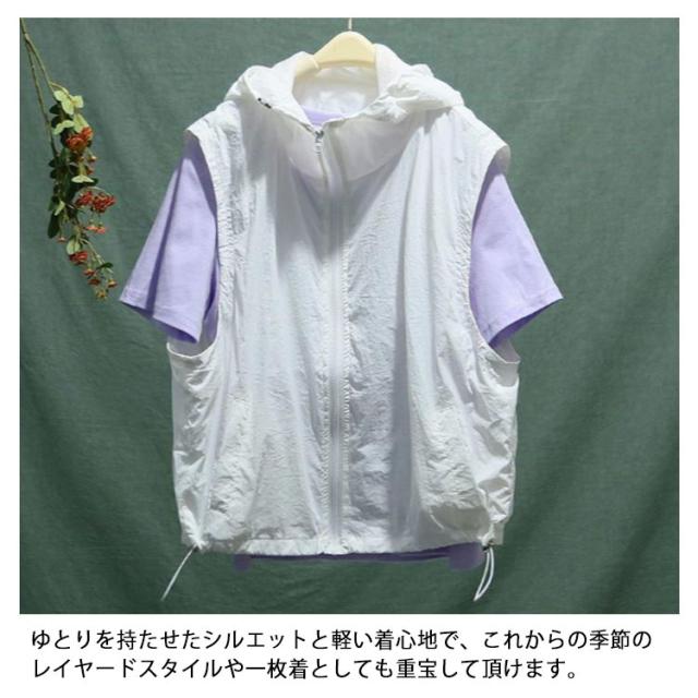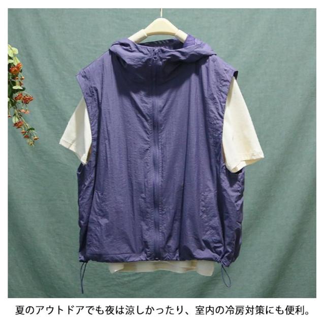 薄手 ジレ ノースリーブ 無地 夏 パーカー ベスト ベスト 前開き レディース レイヤード 薄手 ジャケット アウター 羽織り ライトアウター フード付き 春 スポーツベスト 秋 大人 着回し 涼しい ひんやり UVカット