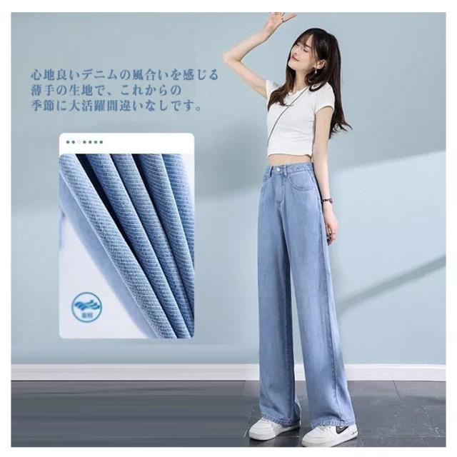 デニムパンツ レディース 大きいサイズ 高身長 低身長 夏 ワイドパンツ デニム ハイウェスト 細見え パンツ ロング丈 ひんやり 接触冷感 ロングパンツ 長ズボン ストレート 涼しい 柔らかい ジーンズ 夏用 ジーパン 冷感パンツ カジュアル 送料無料