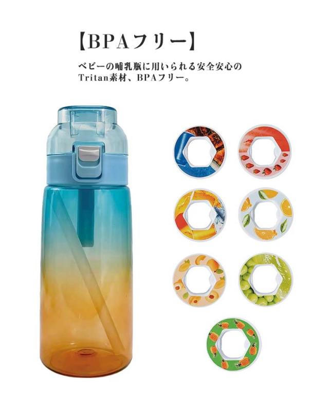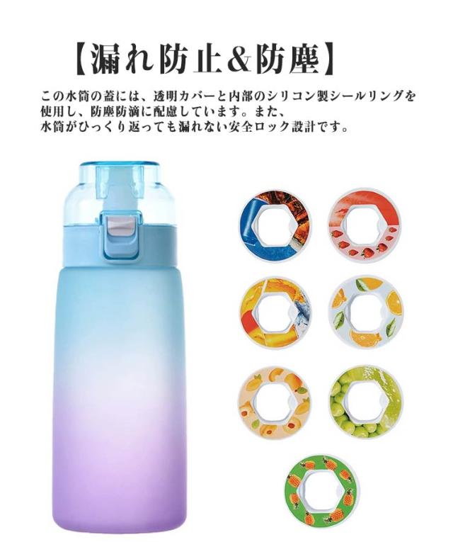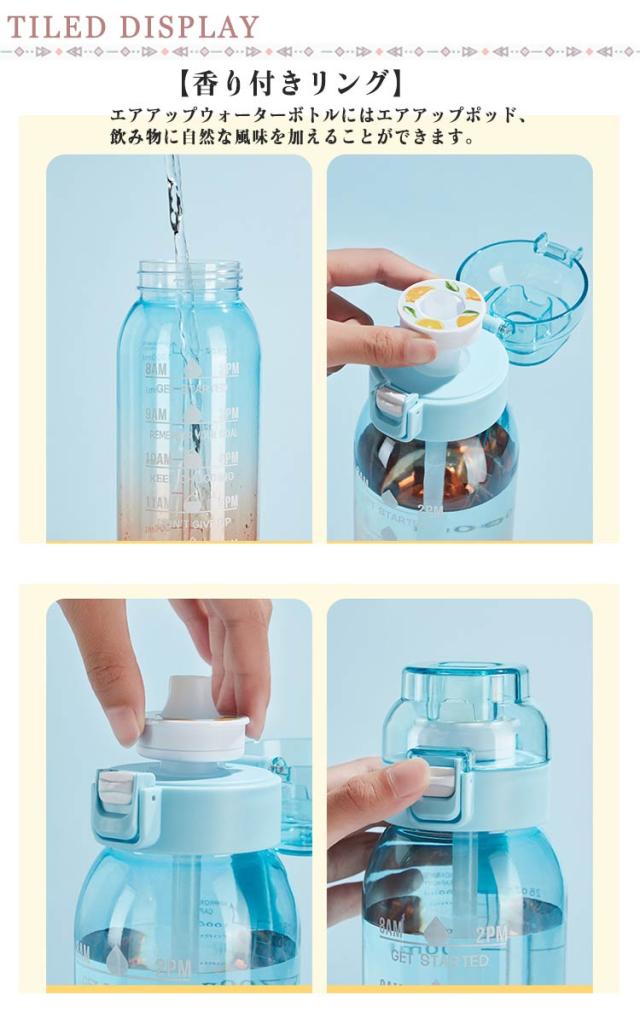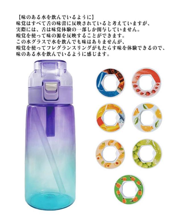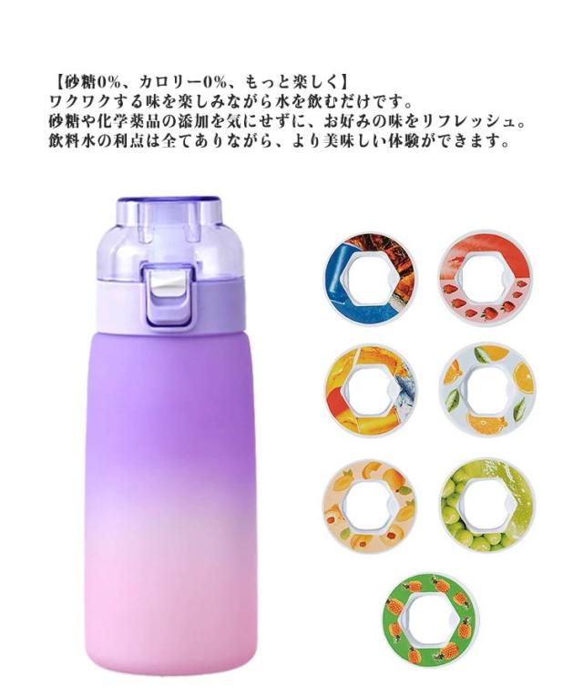 | 【ワンタッチで蓋が開く】ボタンを押すだけで瞬時に蓋が開き、飲み物を楽しむことができます。 【BPAフリー】ベビーの哺乳瓶に用いられる安全安心のTritan素材、BPAフリー。 【味のある水を飲んでいるように】味覚はすべて舌の味蕾に反映されていると考えていますが、実際には、舌は味覚体験の一部しか関与していません。嗅覚を使って味の源を反映することができます。この水グラスで水を飲んでも味はありませんが、嗅覚を使ってフレグランスリングがもたらす味を体験できるので、味のある水を飲んでいるように感じます。 【砂糖0%、カロリー0%、もっと楽しく】ワクワクする味を楽しみながら水を飲むだけです。 砂糖や化学薬品の添加を気にせずに、お好みの味をリフレッシュ。 飲料水の利点は全てありながら、より美味しい体験ができます。 【香り付きリング】エアアップウォーターボトルにはエアアップポッド、飲み物に自然な風味を加えることができます。 【漏れ防止&防塵】この水筒の蓋には、透明カバーと内部のシリコン製シールリングを使用し、防塵防滴に配慮しています。また、水筒がひっくり返っても漏れない安全ロック設計です。 このペットボトルをバックパック、自転車、旅行バッグに接続すると便利です。 旅行、ハイキング、ジム、すべての屋内外活動に最適です。 | |