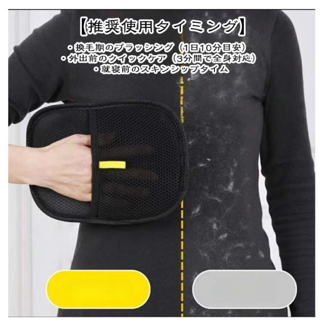 | 【抜け毛取りグローブ】【3点セット】 【静電気活用の集毛機能】 微細な静電作用で抜け毛を自動吸着 ・地肌に優しい極細繊維が絡まった毛も根元からキャッチ 【多様なペット対応】 ・猫/犬(超短毛種〜長毛種)/ウサギ/ハムスター ・生後3ヶ月以上の成長段階に対応 【人間工学に基づく設計】 ・指の動きを妨げない立体裁断 ・滑り止めパッド付き掌部 ・手首まで覆う伸縮性メッシュ 【即時メンテナンス性 】・毛玉の塊を剥がすだけで清潔に ・中性洗剤で丸洗い可能(週1回推奨) 【安心設計のポイント】 ・爪引っ掛かり防止の丸み加工縁 ・皮膚摩擦軽減のソフトタッチ表面 ・抗菌防臭加工(24時間効果持続) 【推奨使用タイミング】 ・換毛期のブラッシング(1日10分目安) ・外出前のクイックケア(3分間で全身対応) ・就寝前のスキンシップタイム 【効果的な活用例 】・ソファの隙間掃除に逆手装着 ・猫タワーの柱磨きに二重装着 ・車内シートのペット毛回収 | |
