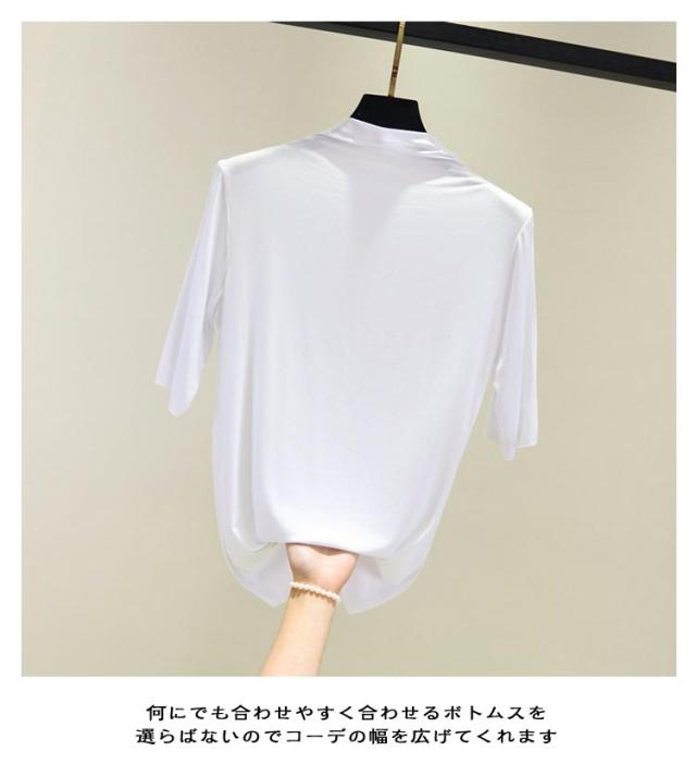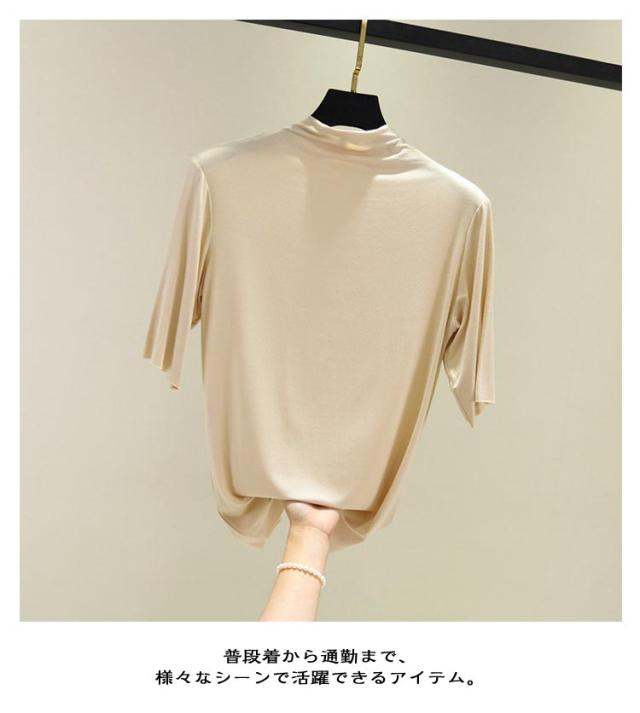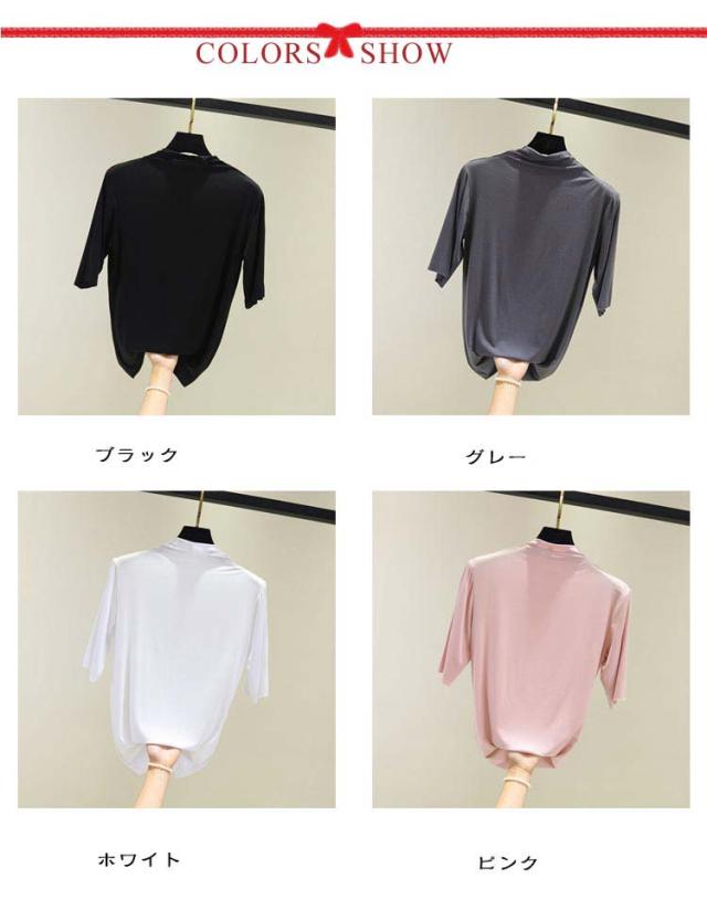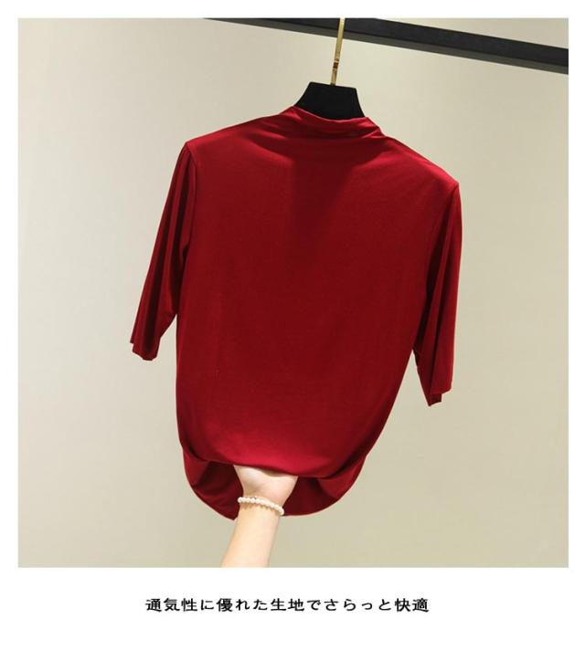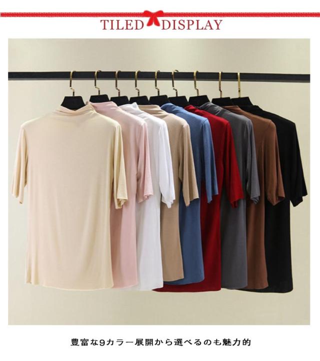 ハイネック 半袖 トップス レディース ゴルフ 半袖 Tシャツ 春 夏 秋 Tシャツ ハイネックtシャツ 日焼け対策 無地 カットソー 半袖tシャツ 五分袖 タートルネック 薄手 フィット スリム トレーナー 20代 30代 40代 OL