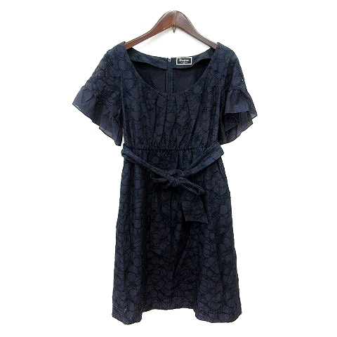【中古】ダイアグラム グレースコンチネンタル ワンピース ミニ 刺繍 半袖 36 S 紺 ネイビー レディース