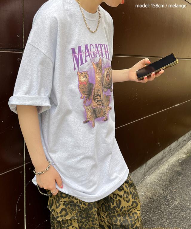ユーモラスなキャットグラフィックが魅力のTシャツ