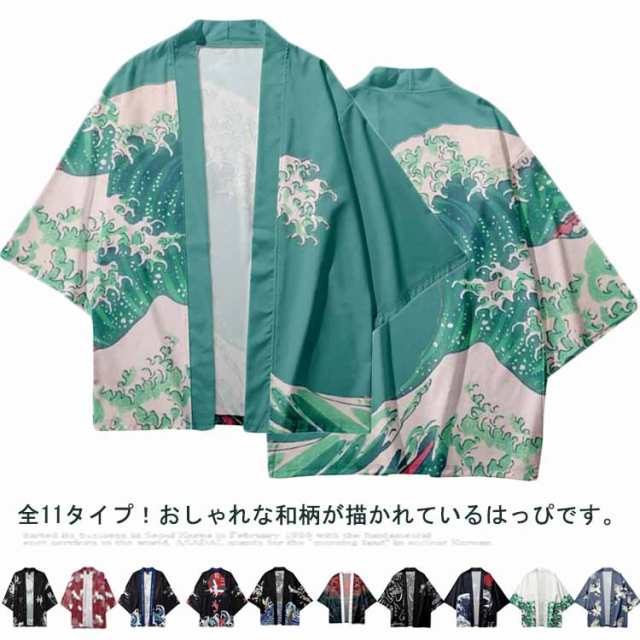 コスチューム 半纏 イベント 法被 お祭り はっぷ 羽織り 甚平 メンズ サマーカーディガン はんてん レディース 和装 和柄 浴衣 和風 アウター ダンス コスプレ ハッピ トップス 法被 鶴柄 波柄 桜柄 おしゃれ
