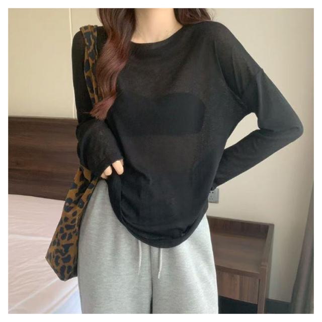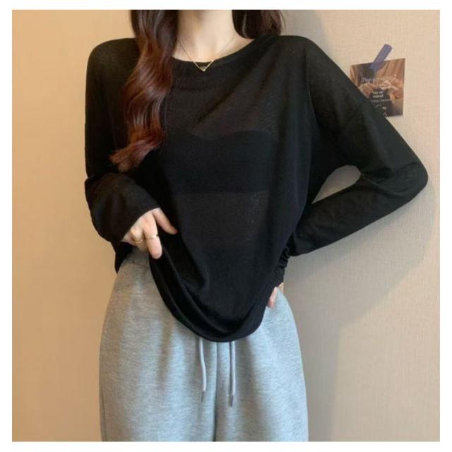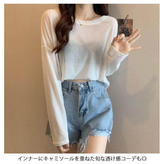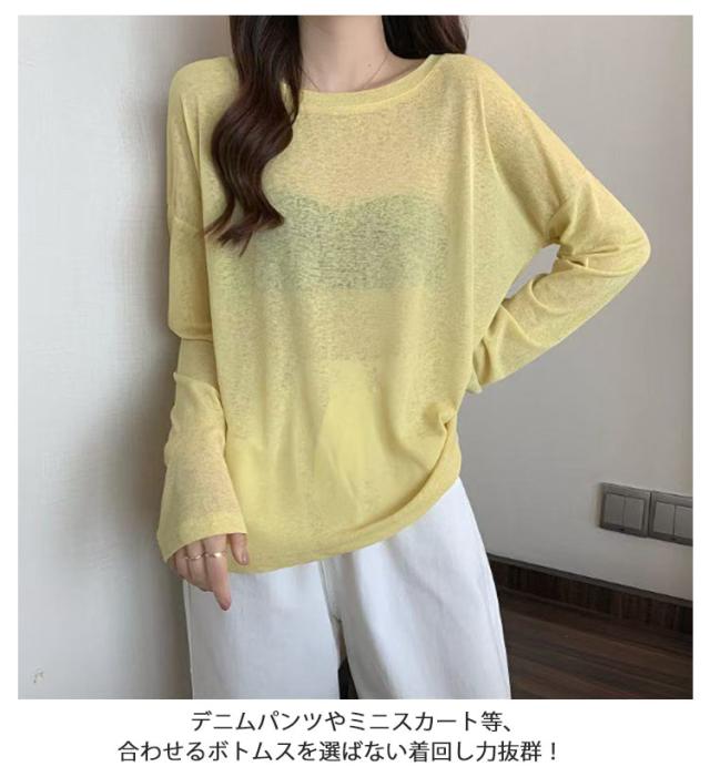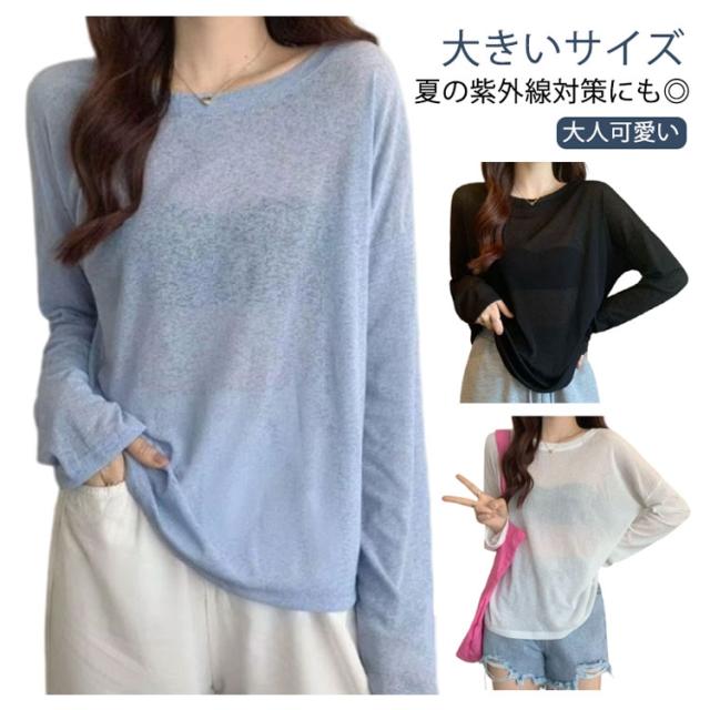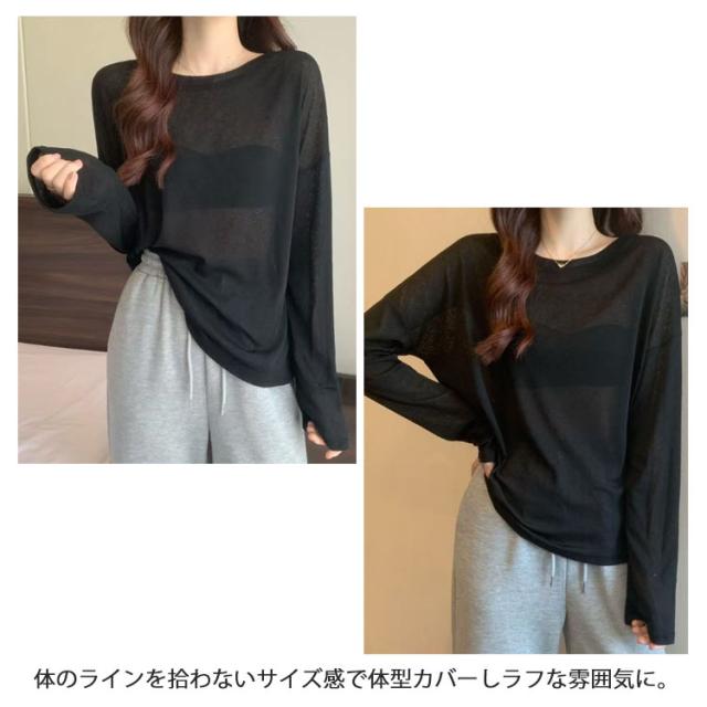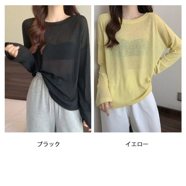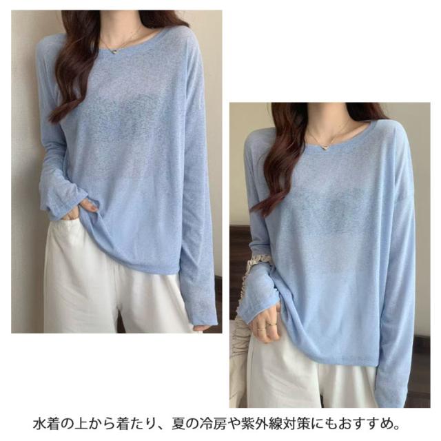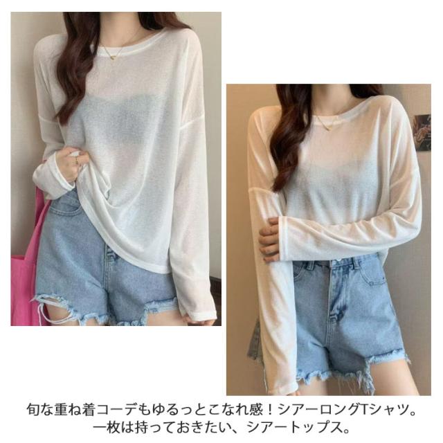 UV対策 レディース 長袖 tシャツ Tシャツ レイヤード シアー トップス カットソー 無地 シースルー ロンt 春 夏 シアートップス 重ね着 クルーネック 薄手 インナー ロンT 着痩せ 大人可愛い きれいめ 長袖 シアートップス 紫外線対策 透け感 大きいサイズ