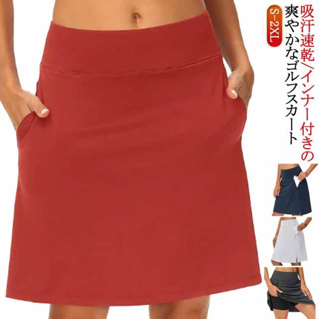 夏 テニスウェア インナー付き 丈長め ゴルフ 膝丈 スカート ストレッチ 吸汗 テニススカート 丈 女性 ゴルフウェア 軽量 ゴルフスカート 速乾 インナー レディース ゴルフスカート テニス ランニング フィットネス トレーニング ヨガウェア 大きいサイズ