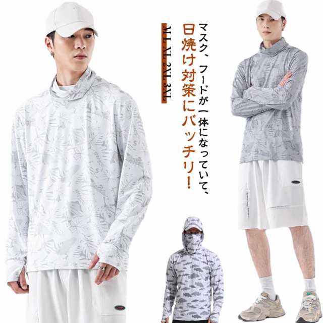 フェイスカバー ラッシュガード ラッシュガード 春 長袖 ラッシュガード 接触冷感 ストレッチ 薄手 体型カバー uv メンズ アウトドア フード付き フェイスカバー型 速乾 冷感 軽量 紫外線対策 日焼け防止 パーカー 釣り 山登り 大きいサイズ 速乾性 uvカット トップス
