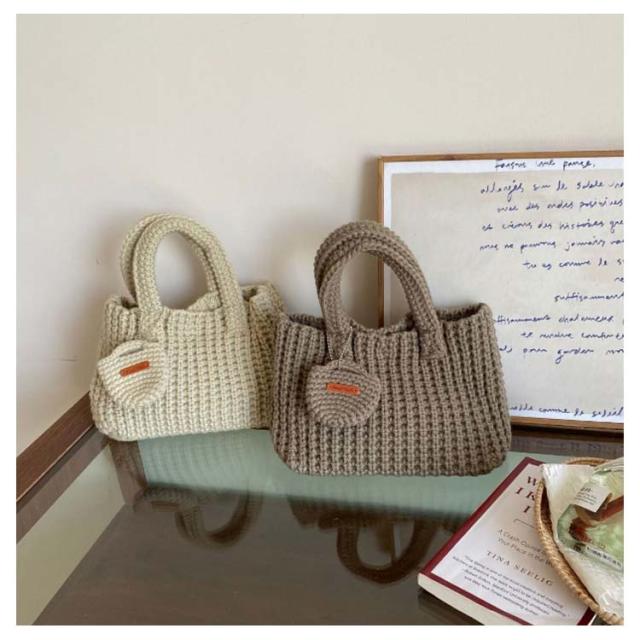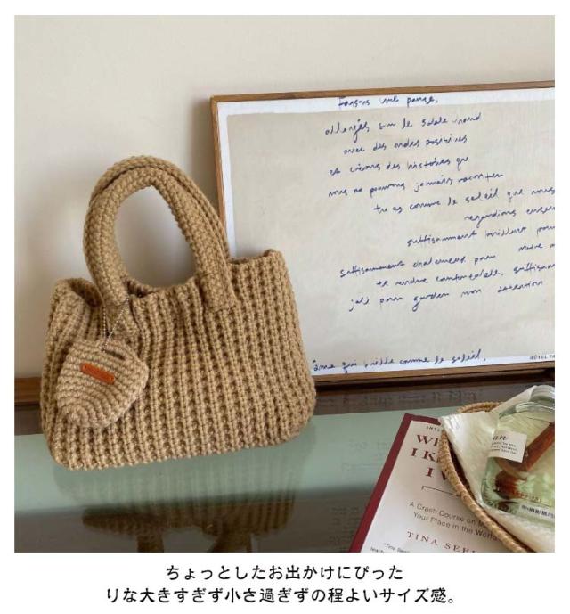 小さめ ニットバッグ ポーチ付 ニット ニットトートバッグ 手提げバッグ 手提げ 冬 トート ニットトート トートバッグ エコバッグ ミニバッグ 可愛い ニットバッグ レディース 底マチあり 大容量 軽い 軽量 秋 韓国