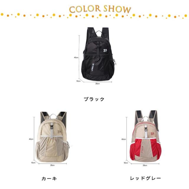 | ・旅行やアウトドアなど荷物が多いシーンで活躍してくれる折りたたみ式リュック ・使うときはパッと広げて使い、使わない時はコンパクトに畳むことができるコンパクトリュック。 ・ショルダーベルト内側にも柔らかいメッシュ素材を採用。長時間背負う時にも、肩がムレないよう工夫されているのが嬉しい。 | |