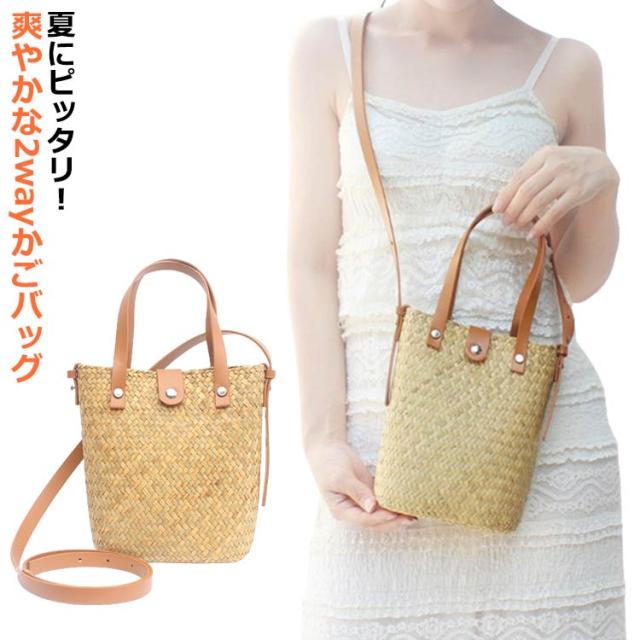 かごバッグ ショルダーバッグ ポシェット 2way 浴衣バッグ 小さめ ミニトートバッグ レディース 夏バッグ 鞄 春夏 ナチュラル 天然素材 籠バッグ トート 軽量 誕生日 プレゼント ギフト