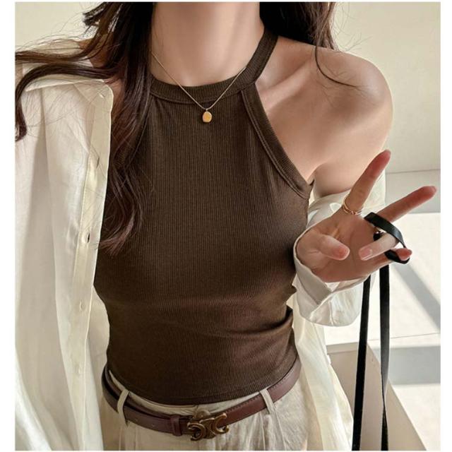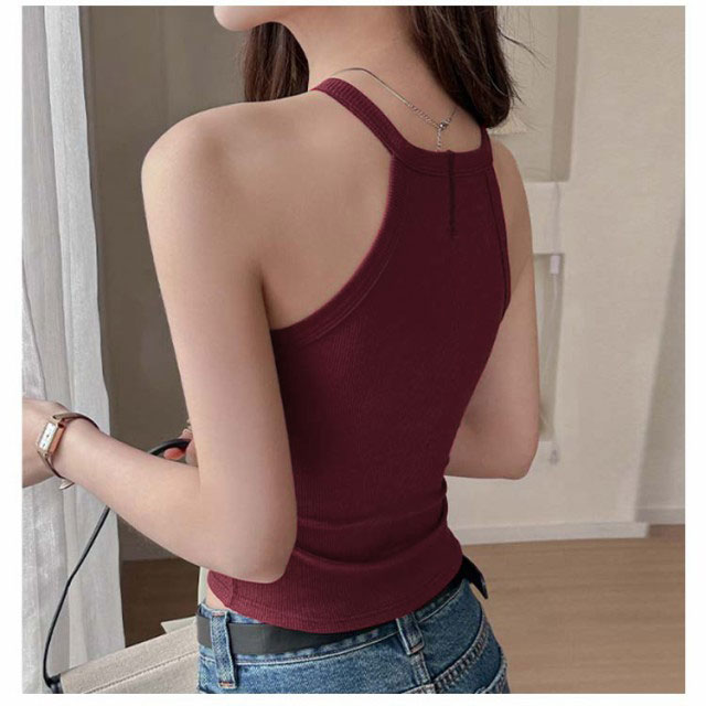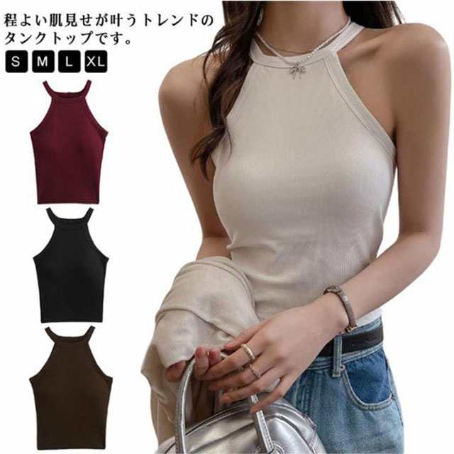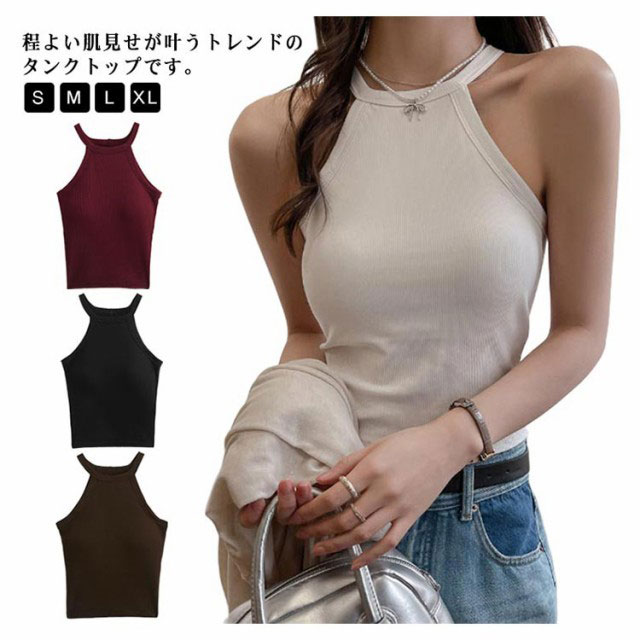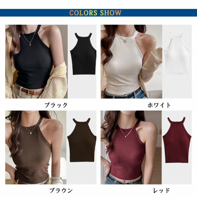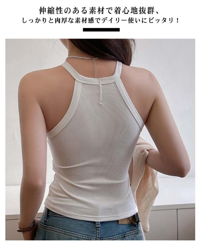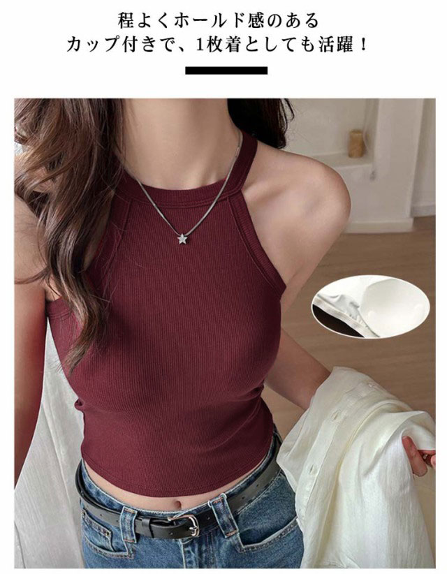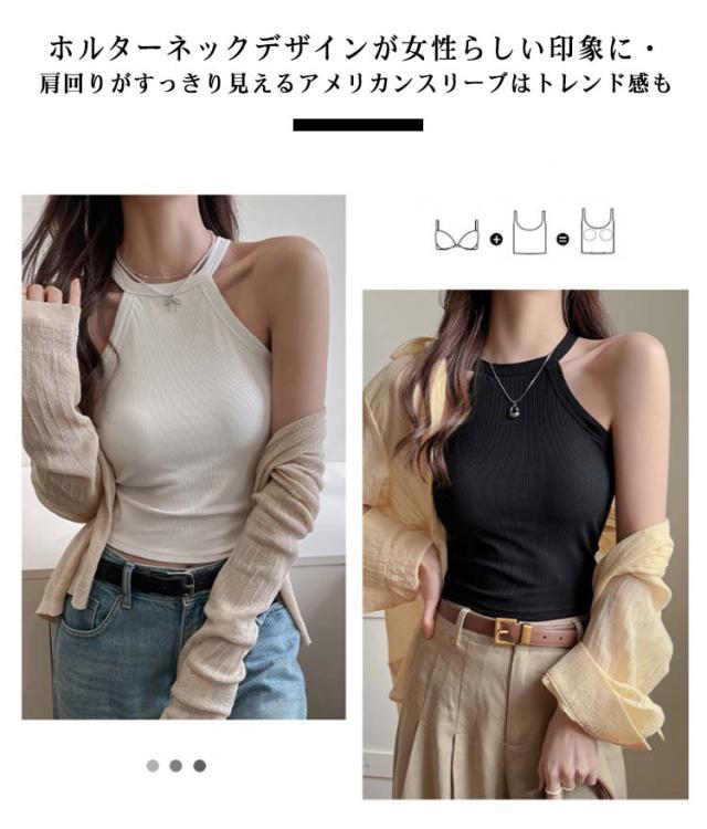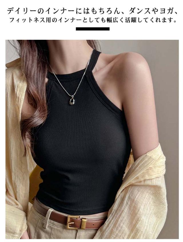 ホルターネック タンクトップ レディース カップ付き トップス ブラカップ キャミソール ブラトップ リブ生地 インナー ノンワイヤー 無地 レイヤード 重ね着 お洒落 スポーツ ストレッチ性