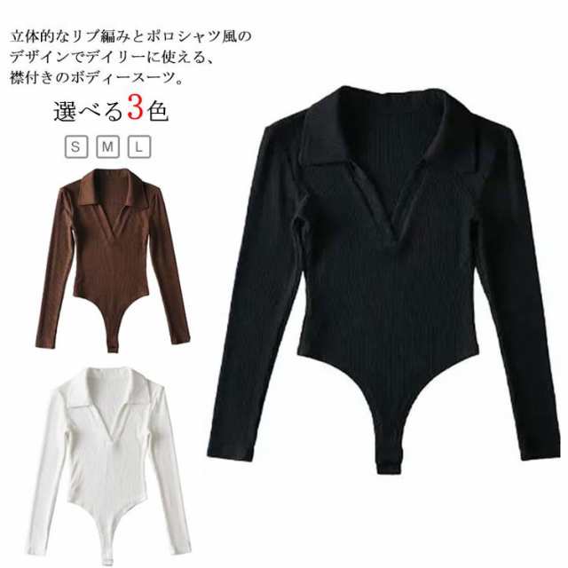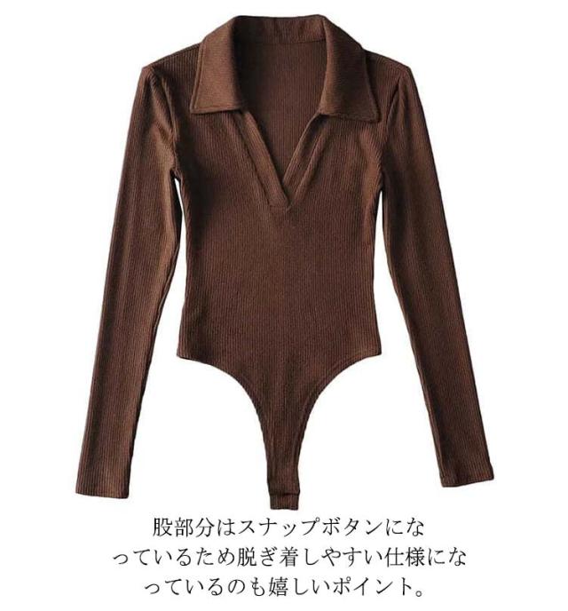 ボディースーツ レディース オールインワン ポロシャツ カットソー 長袖 レオタード リブニット Tシャツ ボディブリファー つなぎ ツナギ インナー 肌着 タイト スリム 肌着 細身 ストレッチ 無地 シンプル セクシー おしゃれ 秋 冬 春 送料無料