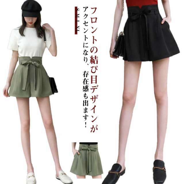 リボン ショートパンツ レディース キュロット パンツ スカーチョ ハーフパンツ キュロットパンツ ワイドパンツ ボトム フレア ウエストゴム ウエストリボン 薄手 夏 女の子 ハイウエスト 体型カバー Aライン ゆったり 森ガール 春夏