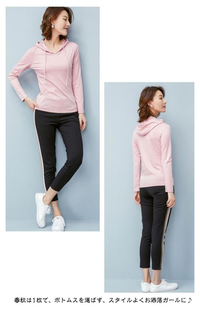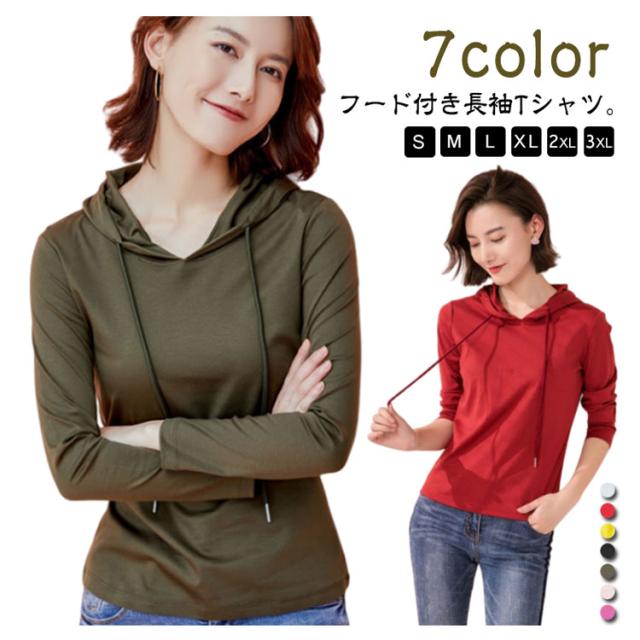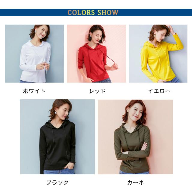 フード付き Tシャツ 長袖 パーカー プルオーバー tシャツ レディース 薄手 体型カバー シンプル 大人 カジュアル 着回し トップス 無地 秋 春 黒 定番 シンプル 白 フード ホワイト カットソー インナー 送料無料