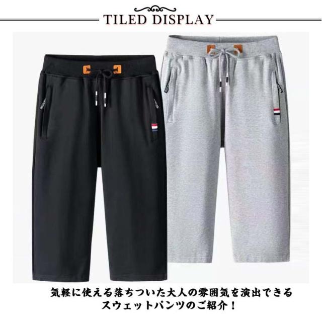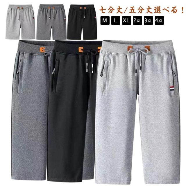 スウェットパンツ メンズ 春夏 7分丈 5分丈 ジャージ スポーツ ハーフパンツ ゴルフウェア ジャージパンツ ジョガーパンツ クロップドパンツ カジュアル 大きいサイズ 夏 父の日 ルームウェア M L XL 2XL 3XL 4XL
