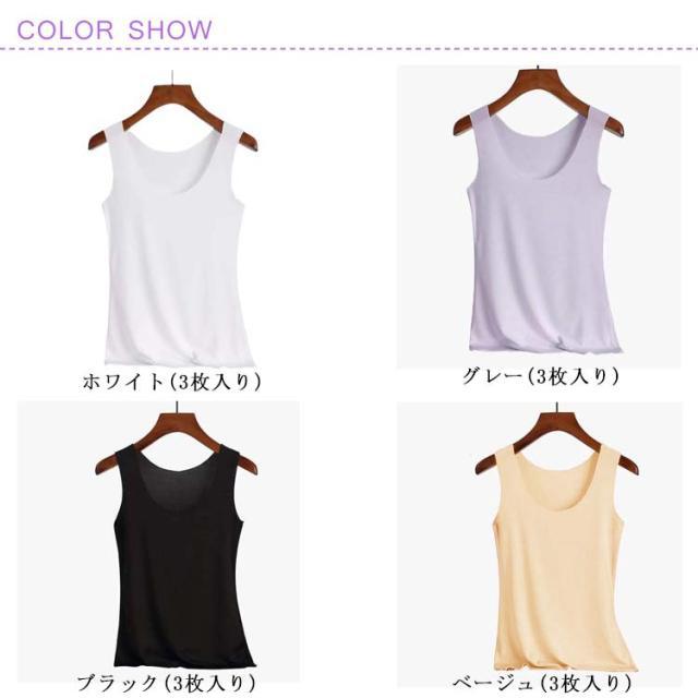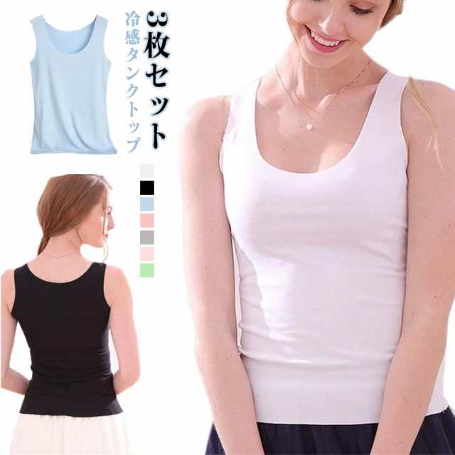 3枚セット レディース インナーシャツ Uネック 冷感タンクトップ インナーキャミソール ノースリーブ 夏用 ひんやり 薄手 アイスシルク タンクトップ 肌着 速乾 通気 シームレス 下着 涼しい アンダーウェア おしゃれ