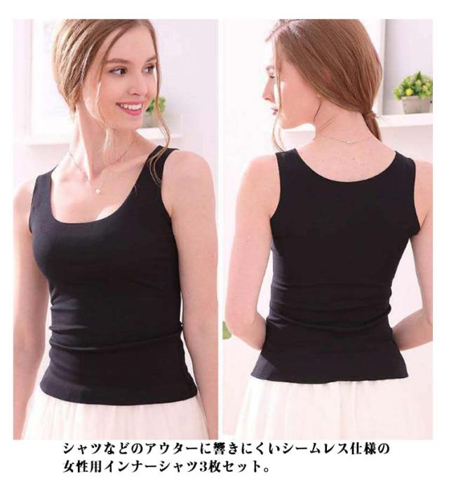 | 冷感タンクトップ。シャツなどのアウターに響きにくいシームレス仕様の女性用インナーシャツ3枚セット。 通気性・速乾性・伸縮性に優れた、肌触りの滑らかなレディース用インナーシャツです。 型くずれしにくく、色落ちにしくい素材を使用。下着のゴワゴワ感がなく、体にきれいにフィットします。 腕まわり、襟ぐりは縫い目のないシームレス仕様なので、シャツなどのアウターに響きにくく、おしゃれに服を着こなせます。 インナーアウター問わず、スポーツやビジネスなど様々なシーンで着用できます。 吸湿性にも優れているので肌に付着せず、夏だけでなくオールシーズンご利用いただけるアイテムです。 | |
