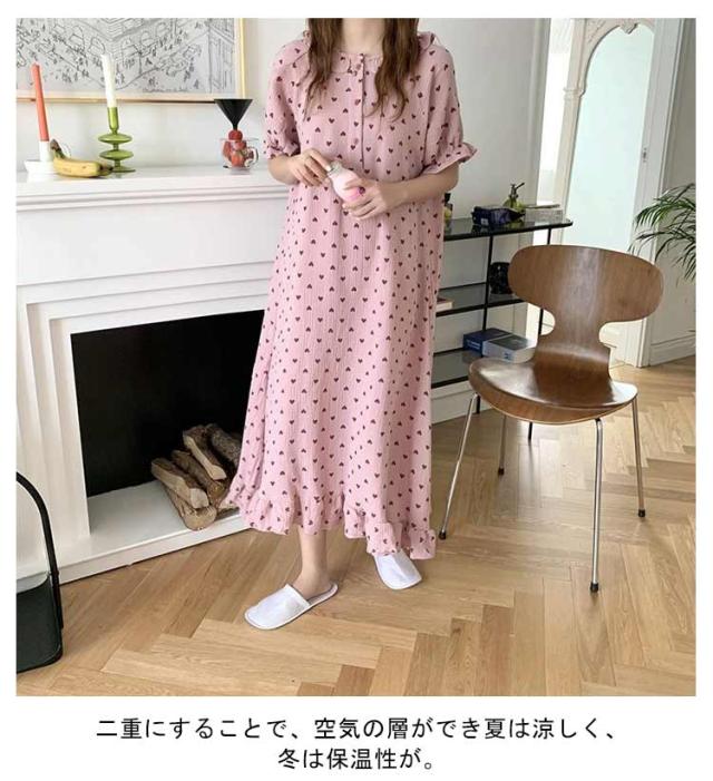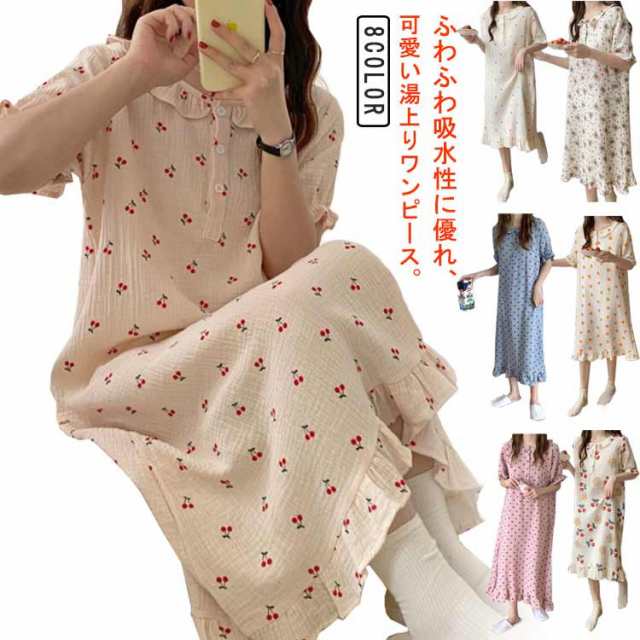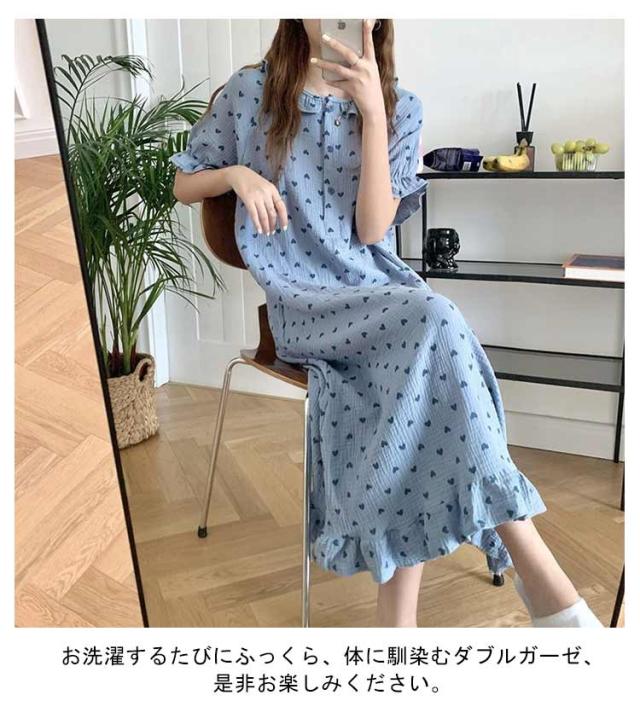 湯上がりガーゼワンピース 湯上りワンピ 2重ガーゼ ワンピース レディース パジャマ ルームワンピース リラックス ウェア 綿 コットン 吸水 お風呂上り ワンピース ネグリジェ 部屋着 着るタオル 可愛い フリル 送料無料
