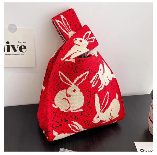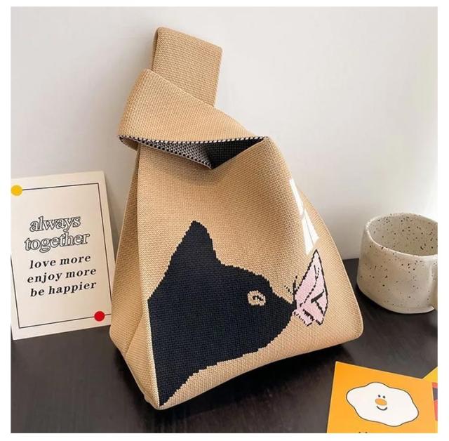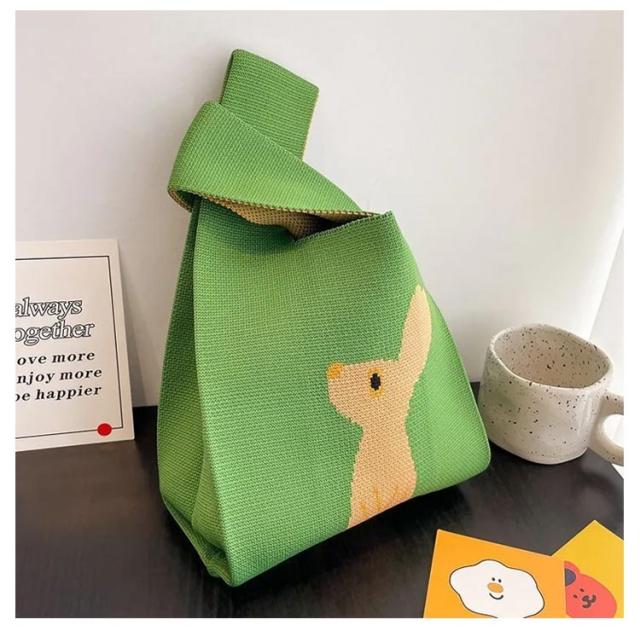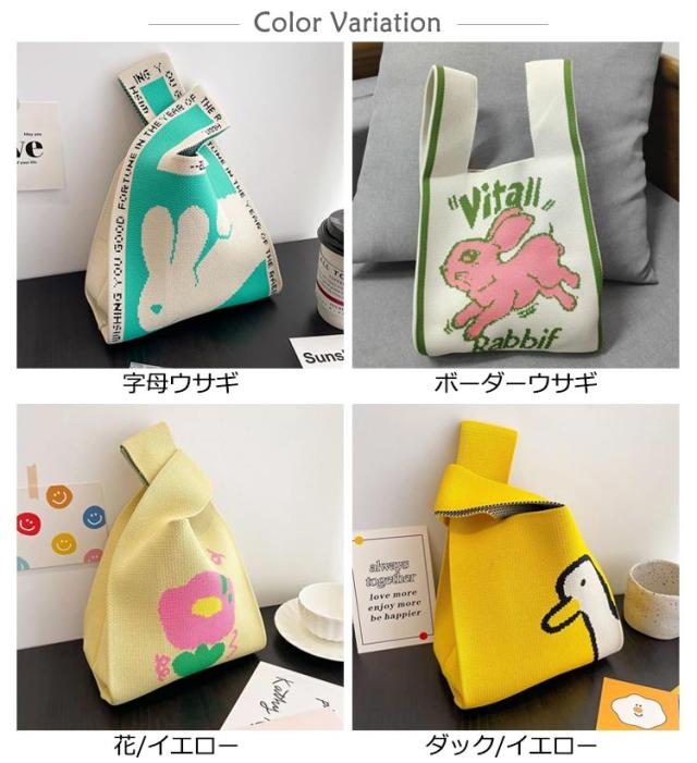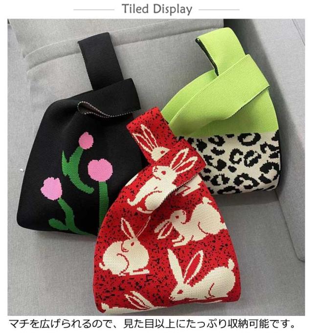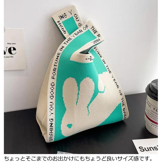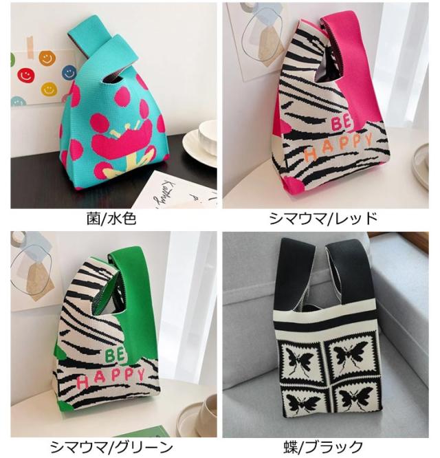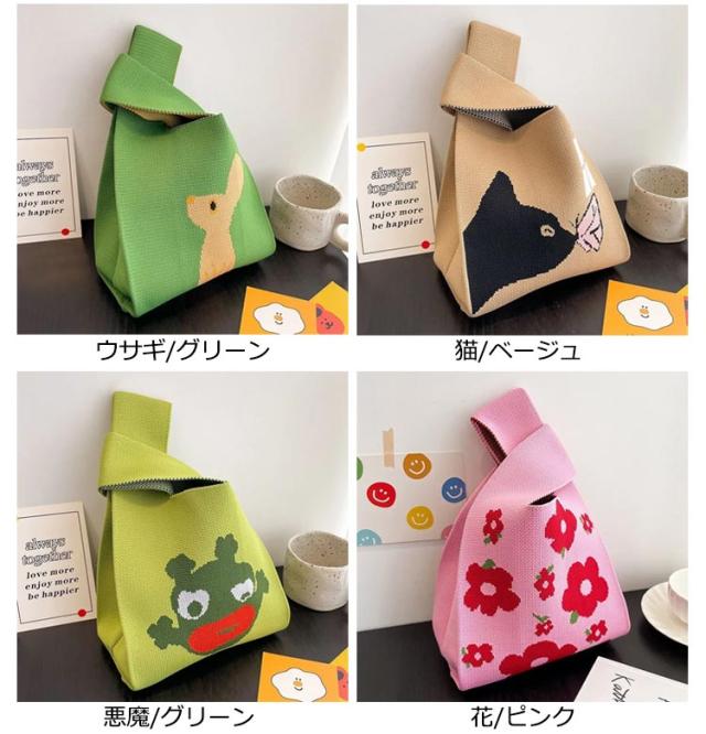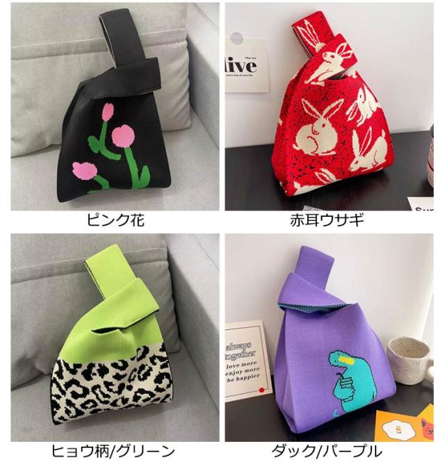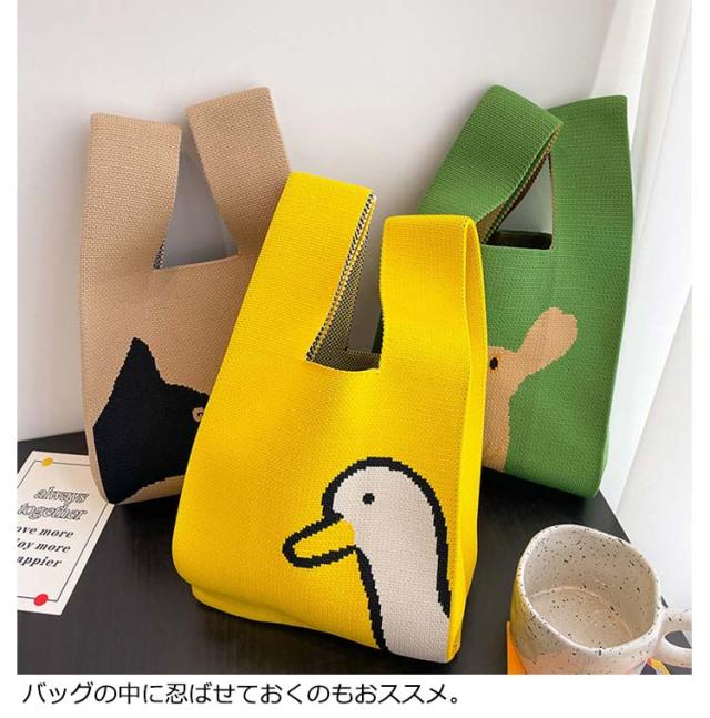 ニット バッグ エコバッグ コンパクト 大容量 手提げバッグ 手提げ袋 ニットバッグ マルシェバッグ かわいい ニット トートバッグ 縦型 軽量 ウサギ 猫 ヒョウ柄 20*35cm おしゃれ ミニバッグ ストライプ 全19柄 可愛い ギフト プレゼント 送料無料