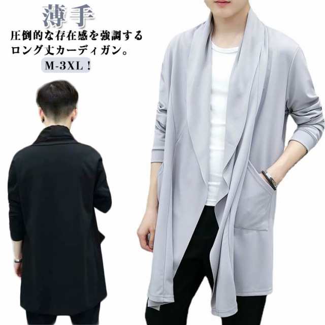 送料無料 メンズ ロングカーディガン 薄手 羽織り サマージャケット カーディガン ショールカラー フード付き 接触冷感 テーラードジャケット ライトアウター シンプル 無地 長袖 春 夏 秋 冷房対策 UVカット 日焼け防止 秋服 父の日 M-3XL