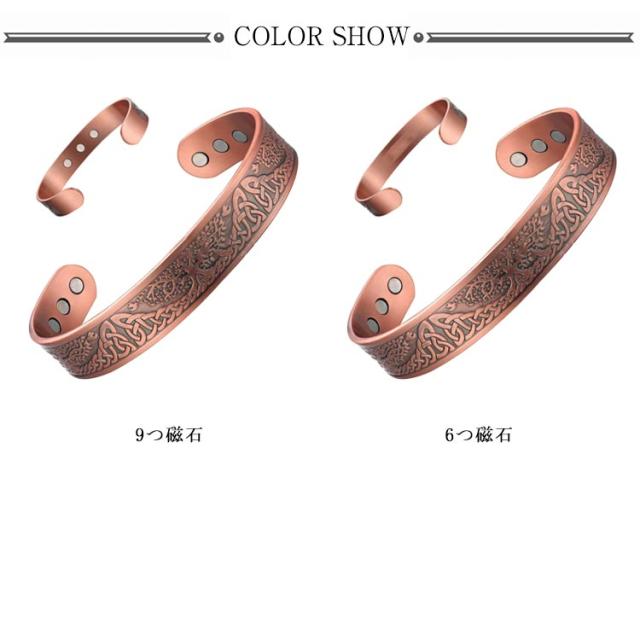 電磁波対策 純銅製ジュエリー 純銅磁気ブレスレット 2点/バングル+リング エネルギーマグネット付き 磁気ブレスレット ストレス解消 減量 痩身 調節可能 健康エネルギー 高磁石 瞑想 ヨガ 磁気リング 指輪 銅ブレスレット 送料無料