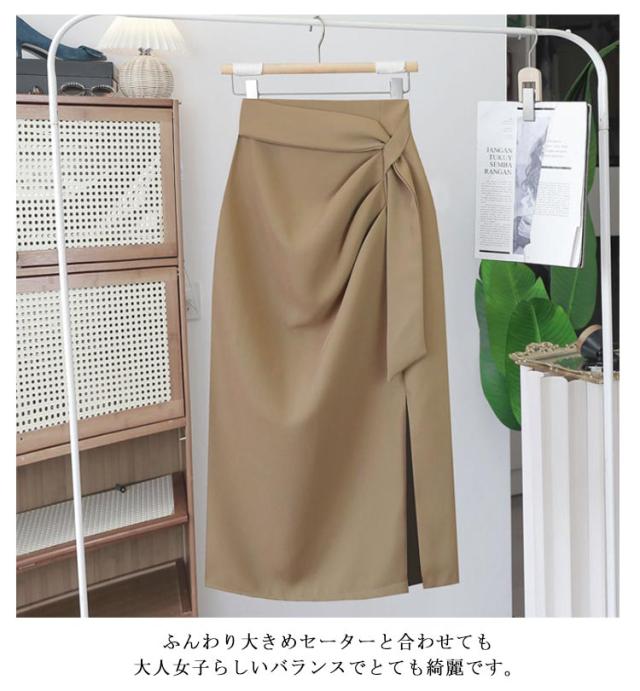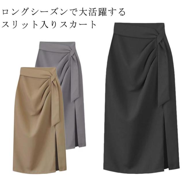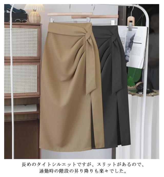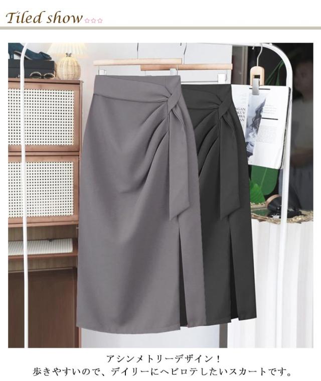 スカート 膝丈 アシンメトリー タイト 膝丈スカート スリット タイトスカート ギャザー入り 春 夏 膝丈 ハイウエスト きれいめ 脚長効果 通勤 面接 仕事用 ミモレ丈タイトスカート 事務 オフィス フォマール OL 大人女性 ボトムス 30代 40代 50代 着やせ 送料無料