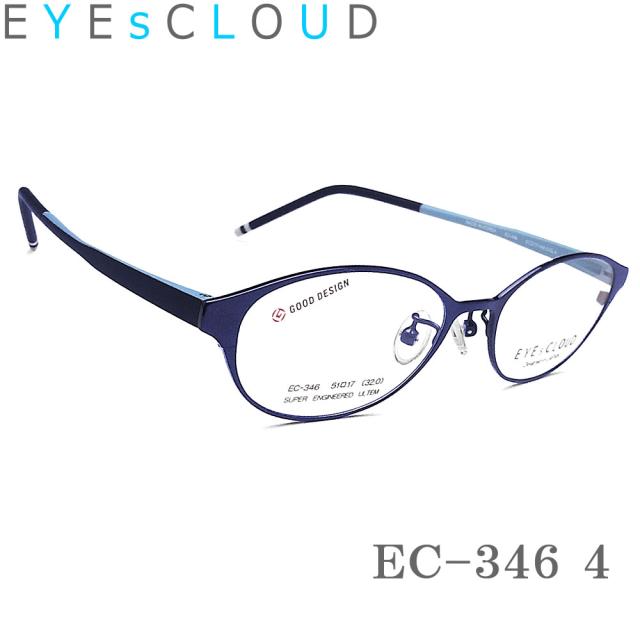 EYEs CLOUD アイクラウド メガネ フレーム EC-346 Col.4 グッドデザイン賞 眼鏡 軽量 伊達メガネ 度付き ネイビー レディース 女性
