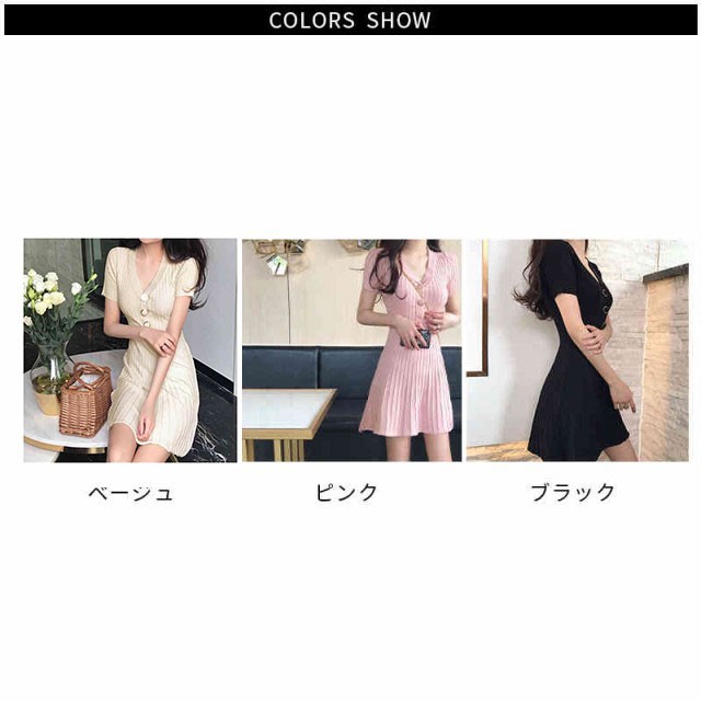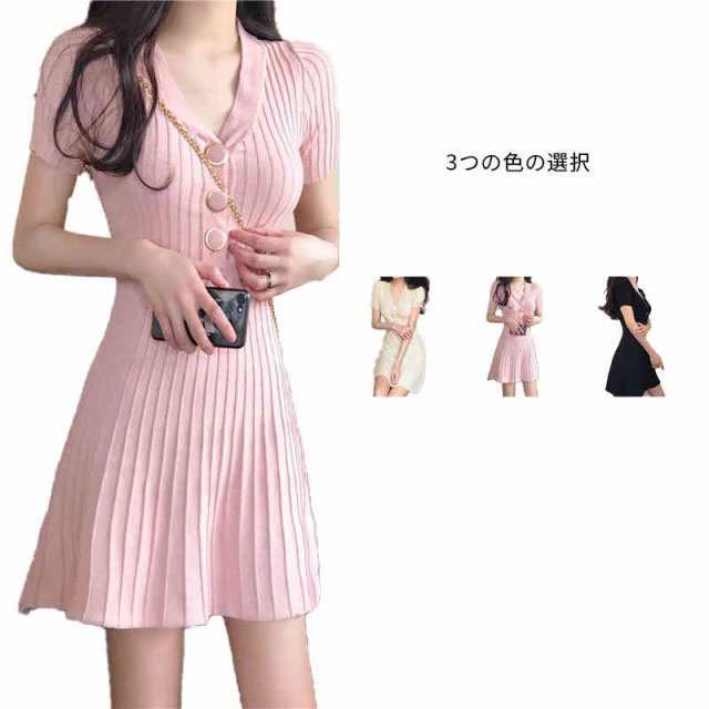プリーツワンピース サマーニット 夏 春 半袖ニットワンピース レディース ミニワンピース 半袖ニットワンピース おしゃれ タイトワンピース きれいめ セクシー Vネック 通勤 ゆったり 旅行 体型カバー シンプル おしゃれ