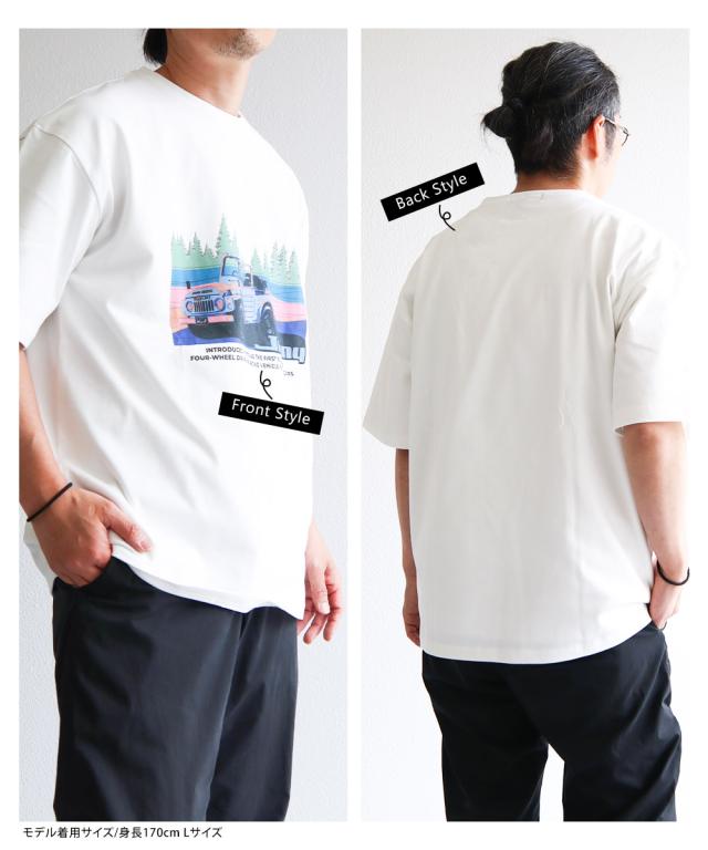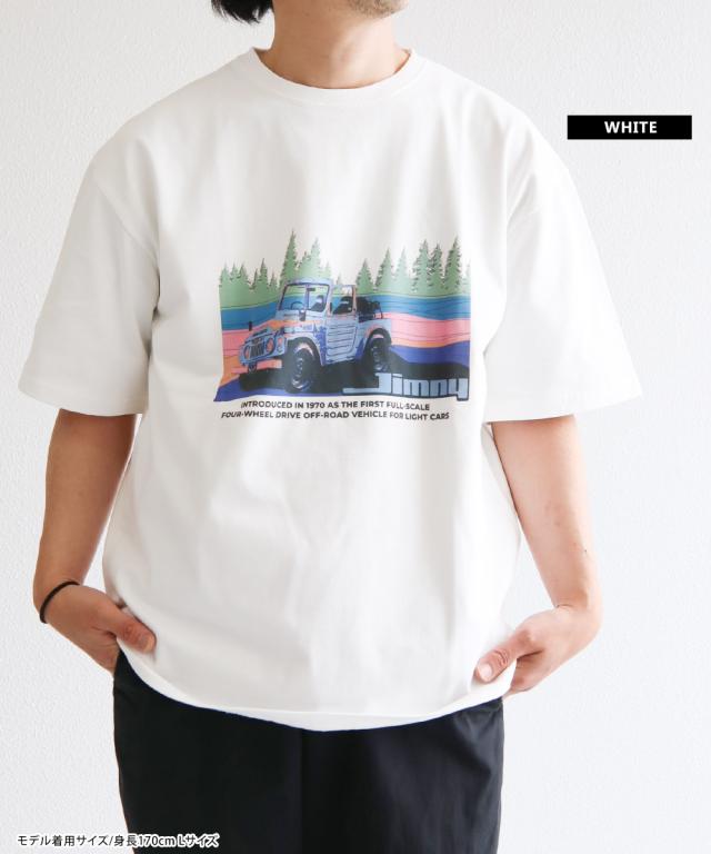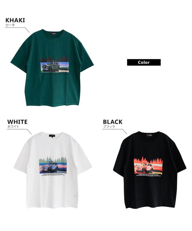 ON WORKS オンワークス tシャツ メンズ 綿100 半袖シャツ コットン クルーネック 丸首 トップス おしゃれ ルームウェア カジュアル ファッション オフィシャルライセンス JIMNY ジムニー 天竺半袖Tシャツ ジムニー8 白 黒 ホワイト ブラック カーキ 046040