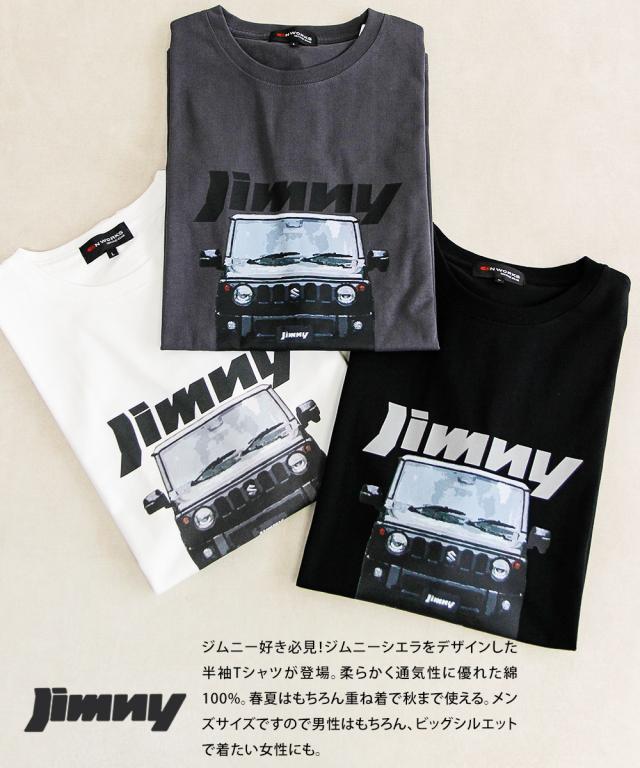 ON WORKS オンワークス tシャツ メンズ 綿100 半袖シャツ コットン クルーネック 丸首 トップス おしゃれ ルームウェア カジュアル ファッション オフィシャルライセンス JIMNY ジムニー 天竺半袖Tシャツ ジムニーシエラ 白 黒 ホワイト ブラック 046060
