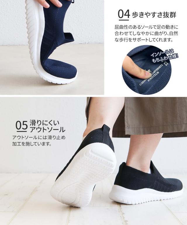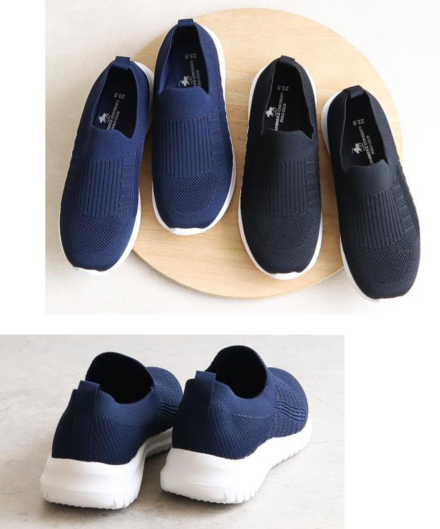 ポロクラブ スリッポン レディース スニーカー 黒 白 ローカット 軽量 軽い 通気性 クッション ふわふわ 履きやすい 歩きやすい 痛くない 疲れにくい フィット感 おしゃれ カジュアル フィットネス 散歩 ニットシューズ シューズ 靴 ブラック ネイビー POLO CLUB 531-103n