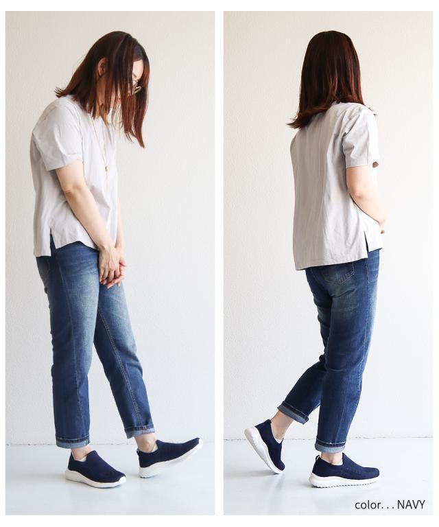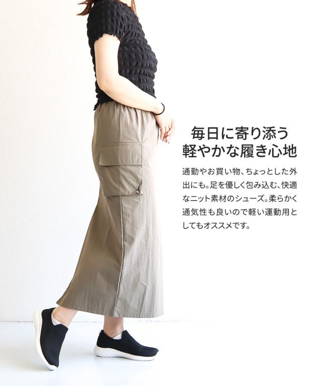 足を優しく包み込む、快適なニット素材のシューズです。