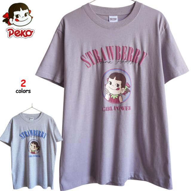 送料無料 ペコちゃん Tシャツ ぺこちゃん レディース ストロベリー いちご イチゴ 苺 3Dプリント 不二家 ミルキー ショートケーキ ペアルック サンリオ レトロ 昭和 FUJIYA 個性的 ゆめかわいい キャラクター くすみカラー グレー パープル ピンク ラベンダー