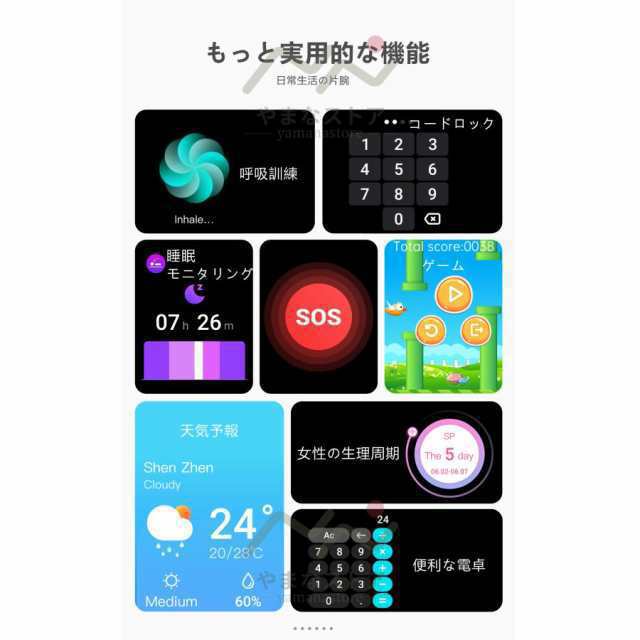 関連キーワード:(全ての商品機能ではありません)smart watch 画面小さめ 24時間体調管理 スマートウォッチ日本製 センサー 曲面 スマートウォッチ 日本語対応 日本製スマートウォッチ