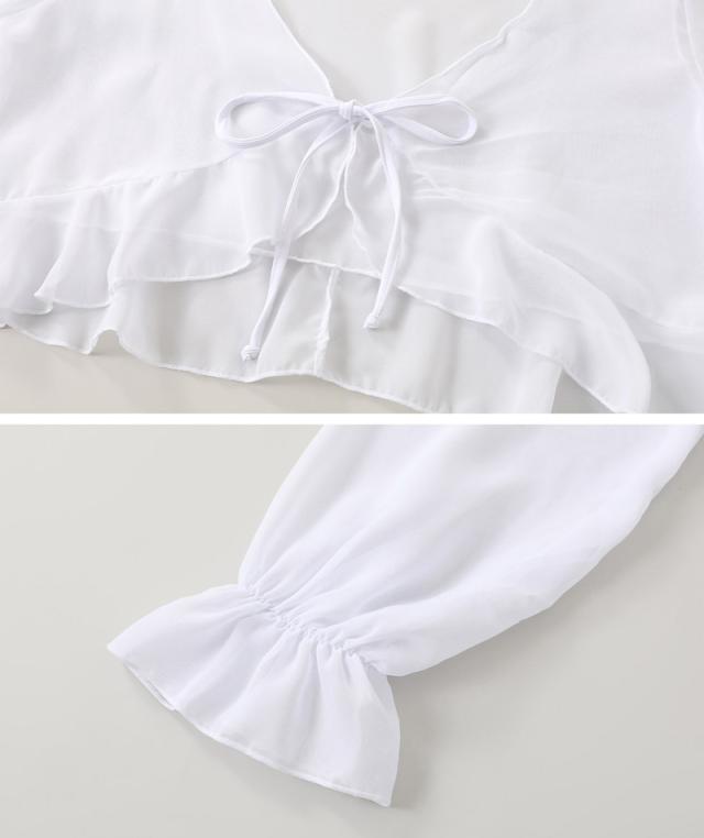ふわっとかわいい長袖のキャンディスリーブ&透け感がオシャレなボレロがセット