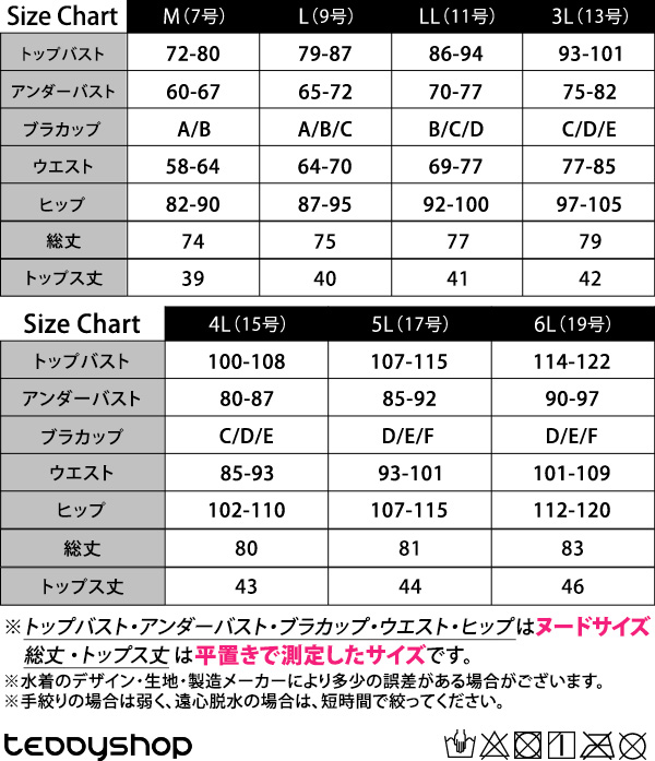 ※トップバスト・アンダーバスト・ブラカップ・ウエスト・ヒップはヌードサイズ、