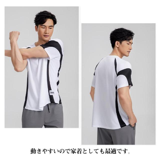 ひんやり メンズ 接触冷感 tシャツ メンズ ストレッチ カットソー 夏服 トップス 速乾tシャツ スポーツウェア ドライ 涼感 涼しい 大きいサイズ 軽い 柔らかい 運動着