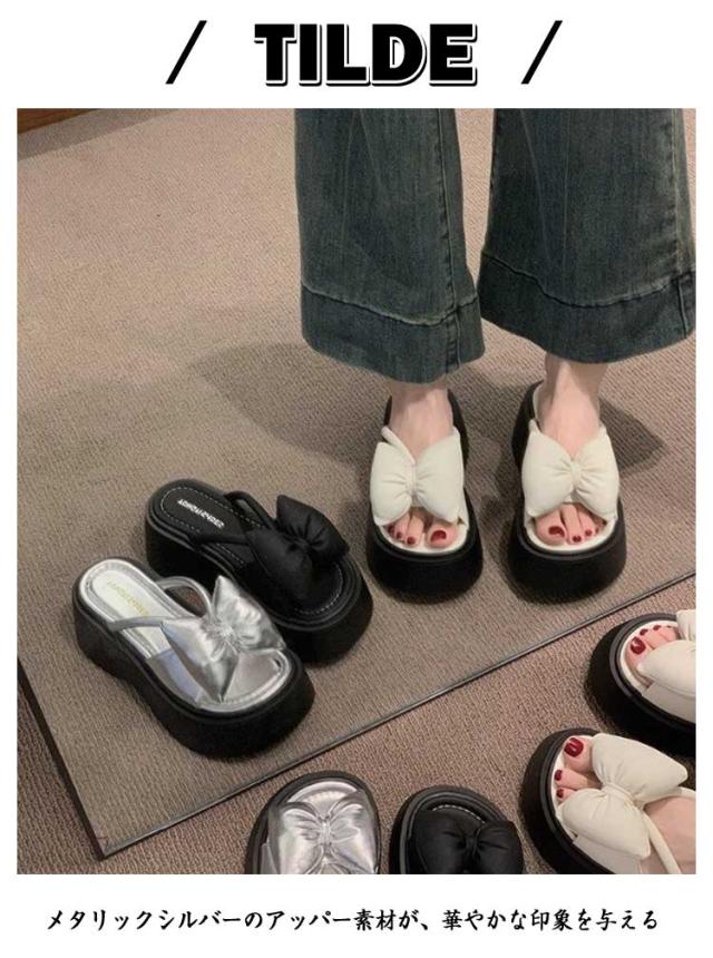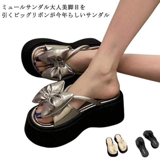 リボン サンダル レディース 夏靴 歩きやすい リボン プラットフォーム 厚底サンダル サンダル コンフォートサンダル 可愛い ガーリー靴 韓国風 ミュールサンダル 大人