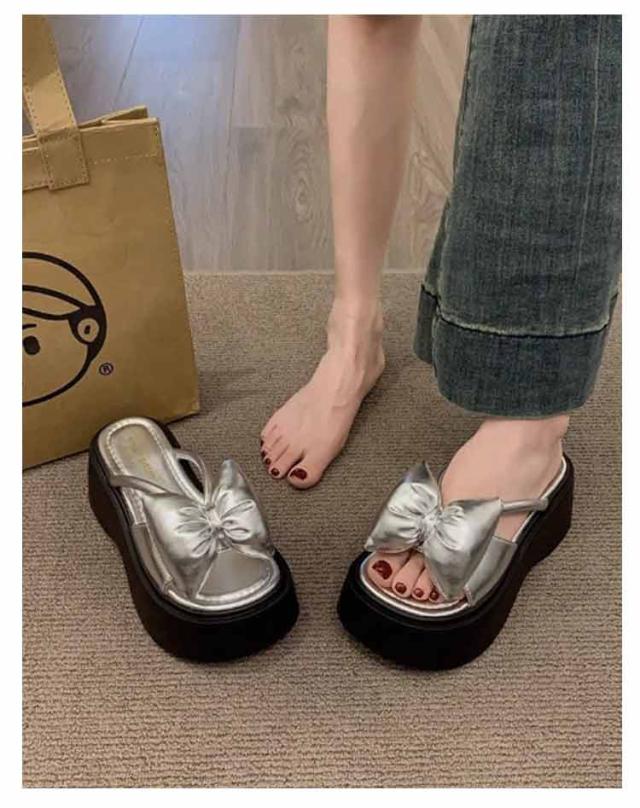 | ミュールサンダル大人美脚目を引くビッグリボンが今年らしいサンダル メタリックシルバーのアッパー素材が、華やかな印象を与える ボリューム感のあるプラットフォームソールで安定感があり、厚底でも疲れにくく、足を華奢に見せてくれる。 カジュアルなデニムスタイルからフェミニンなワンピースまで幅広いコーディネートに合わせやすい一足 | |