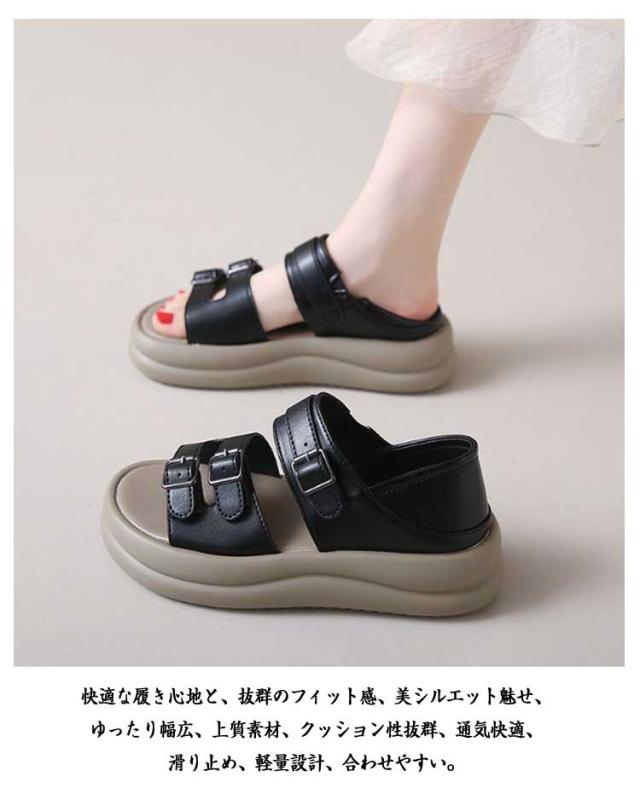 人間工学 レトロな厚底サンダル 厚底4.5cm 2WAY サンダル 通気性 軽量設計 外反拇趾 滑り止め 美脚 2WAY レディース 歩きやすい 幅広 カジュアルシューズ 春 夏 ウォーキングシューズ レディース靴 快適 大きいサイズ ブラック ベージュ