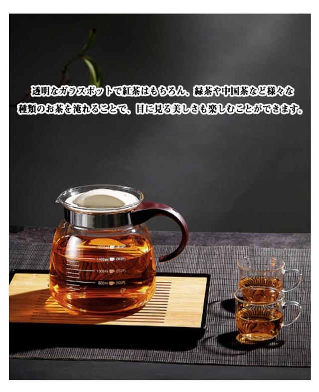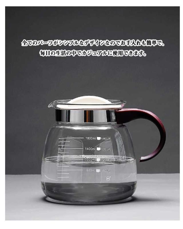 1800ml 耐熱ガラス ティーポット 1000ml ハンドル 直火可 ティーポット フルーツティー 茶こし一体型蓋 花茶 ガラスポット 紅茶ポット 工芸茶 ハーフティー ガラス急須 ジャンピング ガラスティーポット 食洗機対応