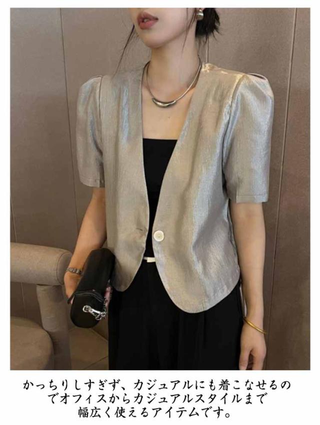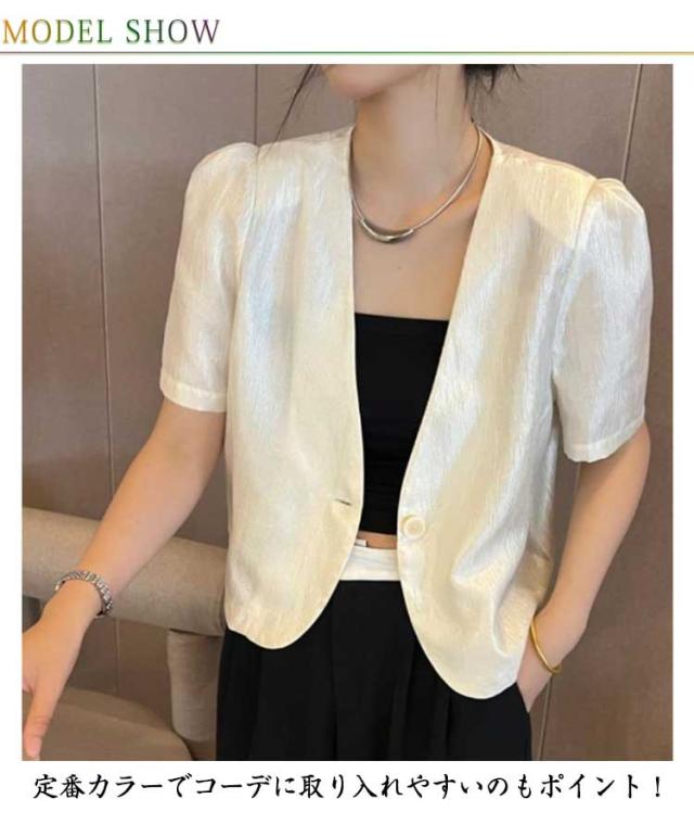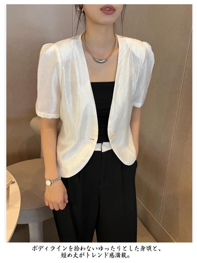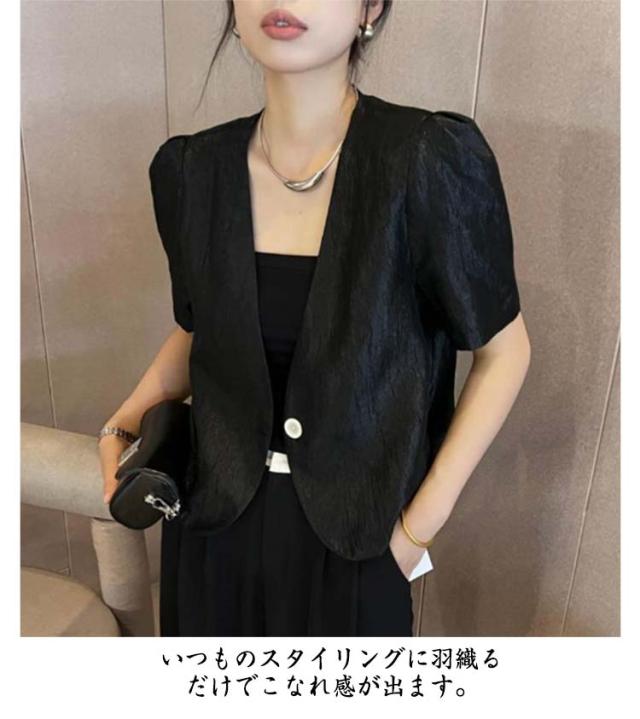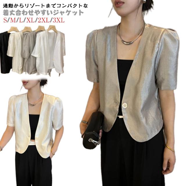 半袖 カジュアル ジャケット バルーンスリーブ ボリューム袖 レディース ジャケット フォーマル 秋 ライトアウター 春アウター テーラード 夏 秋アウター 二つの腕隠し 体型カバー プレゼント 贈り物 ギフト