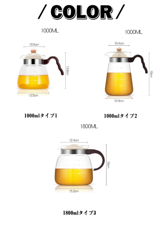 ハーフティー ジャンピング ハンドル 直火可 ティーポット ガラスポット 1000ml ティーポット 花茶 フルーツティー 直火 紅茶ポット 1800ml 耐熱ガラス ガラス急須 茶こし一体型蓋 ガラスティーポット 食洗機対応