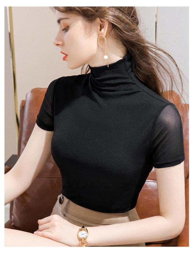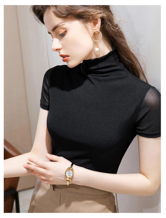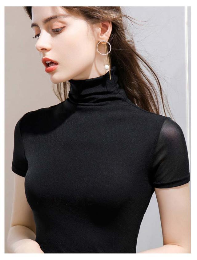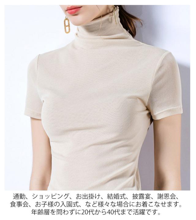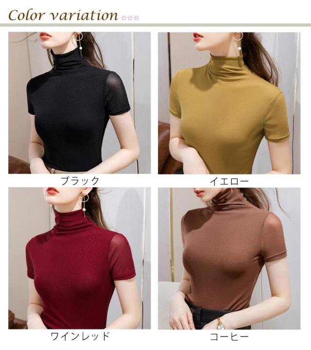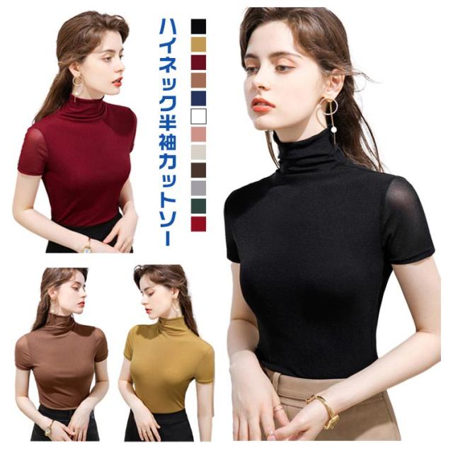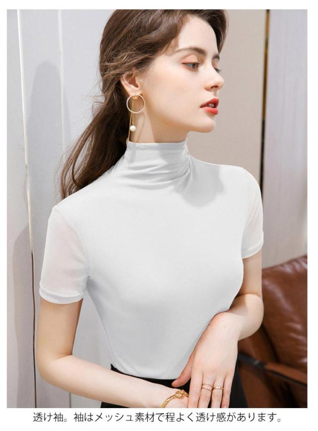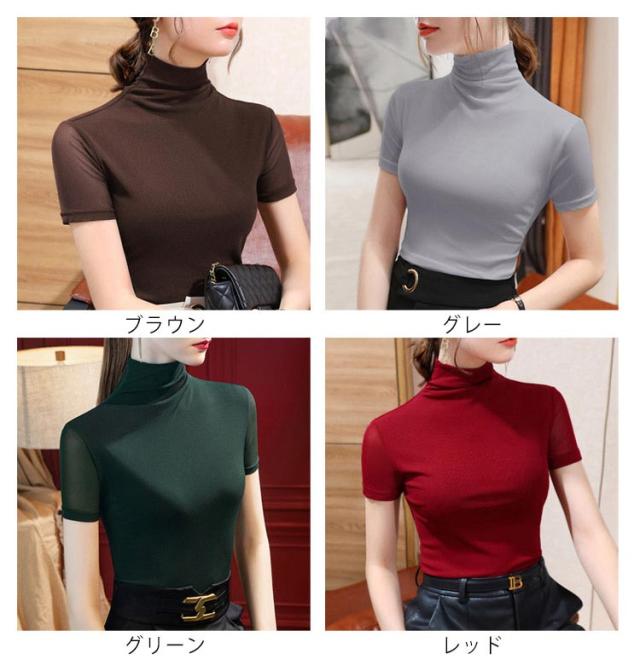 重ね着 レディース フィット 半袖tシャツ 夏 カットソー 部屋着 tシャツ 春 Tシャツ 半袖 タートルネック 大きいサイズ 無地 シンプル インナー ハイネックtシャツ レイヤード スリム メッシュ素材 ハイネック 春夏 トップス tシャツ 通学 通勤