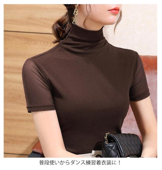 | ハイネック半袖カットソー。 縫い目がない。首に切り替えしの縫い目がないためゴワつかず、下がりにくいストレスフリーなネックです。 透け袖。袖はメッシュ素材で程よく透け感があります。 程よく伸縮性のある素材なので動きやすく、 着心地が良いです。また、さらっとして柔らかいメッシュ生地が魅力です。 通勤、ショッピング、お出掛け、結婚式、披露宴、謝恩会、食事会、お子様の入園式、など様々な場合にお着こなせます。年齢層を問わずに20代から40代まで活躍です。 普段使いからダンス練習着衣装に! | |
