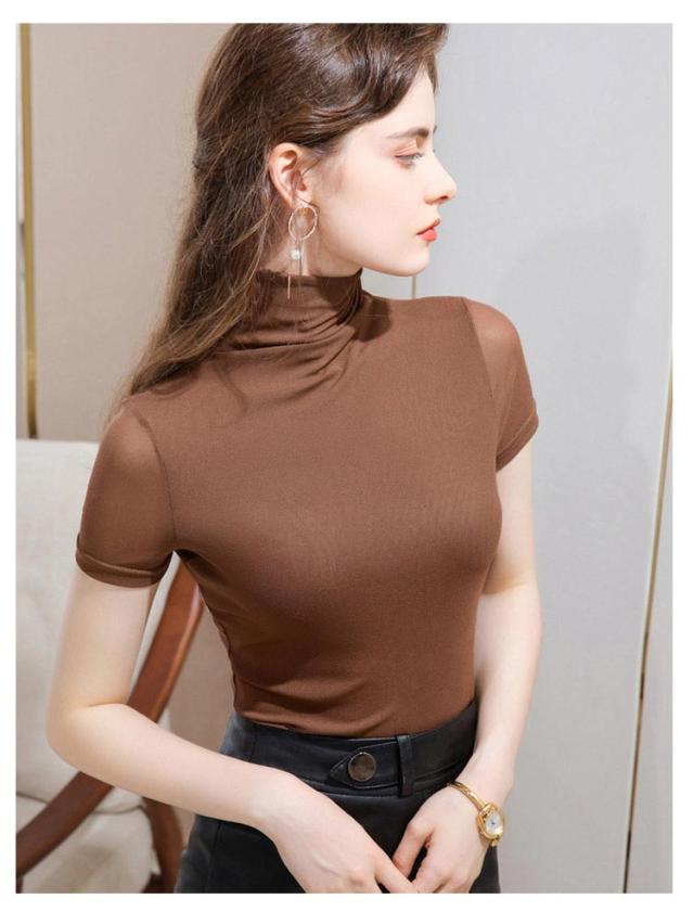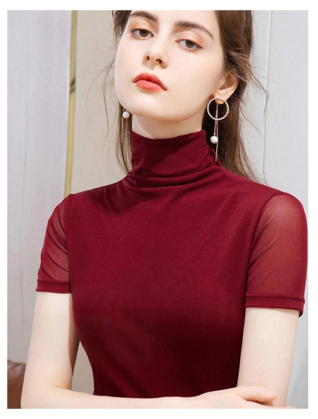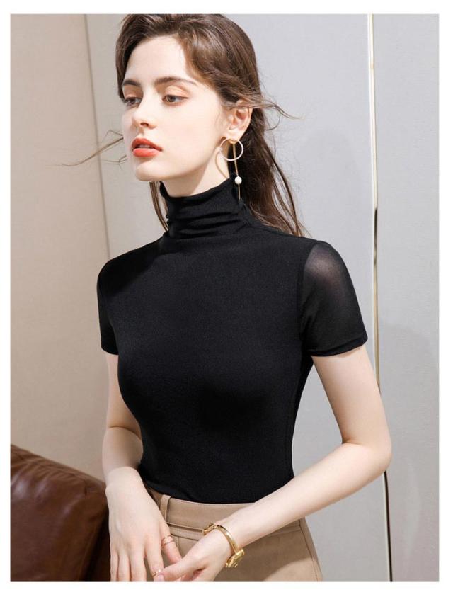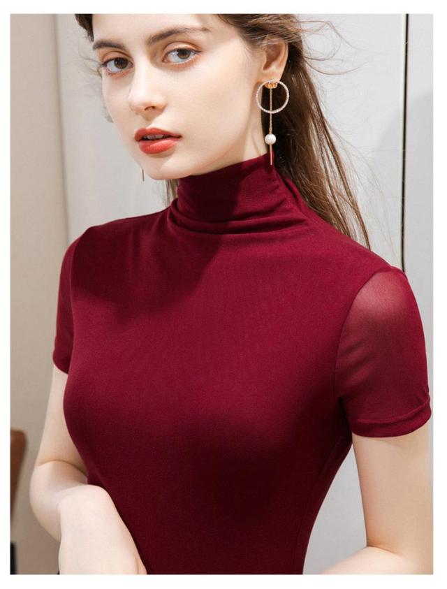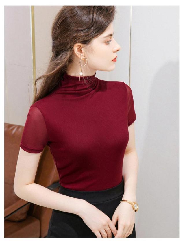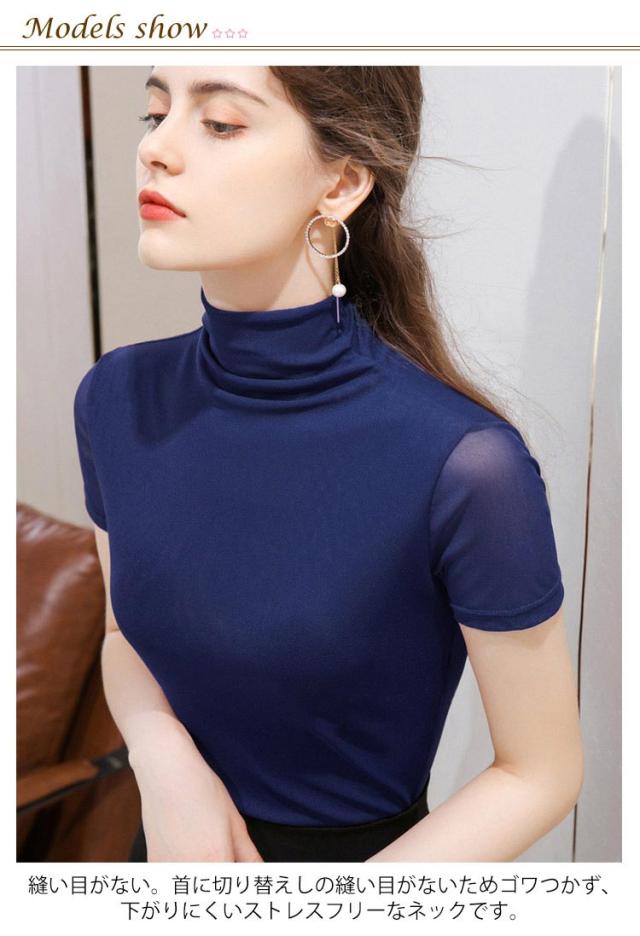 カットソー ハイネック 半袖tシャツ 夏 tシャツ フィット レディース 春 ストレッチ 重ね着 半袖 タートルネック メッシュ素材 無地 シンプル Tシャツ ハイネックtシャツ レイヤード インナー スリム 大きいサイズ 春夏 トップス 部屋着 通学 通勤