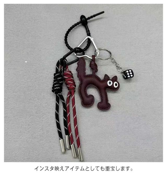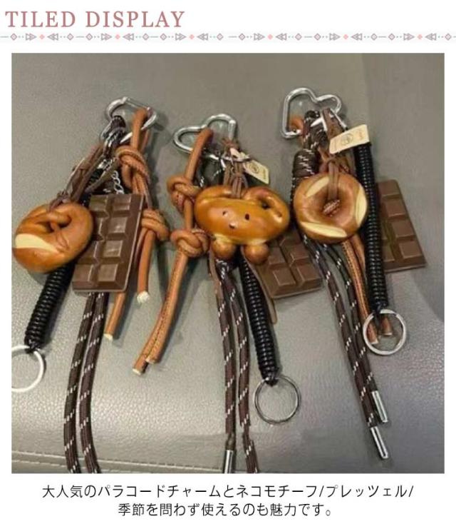 バッグチャーム ねこチャーム プレッツェルモチーフ ロープチャーム カラナビコーデ バッグアクセサリー チャーム 猫モチーフ パラコードチャーム じゃらじゃらつけ カラナビ 韓国ファッション 韓国チャーム 猫チャーム キーリング キーホルダー