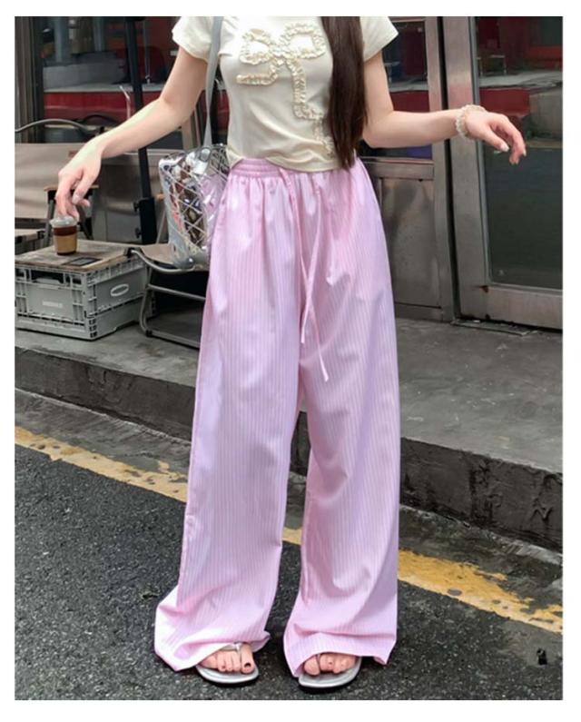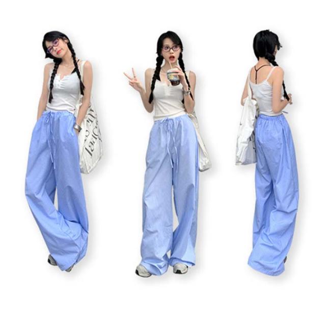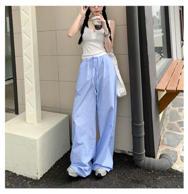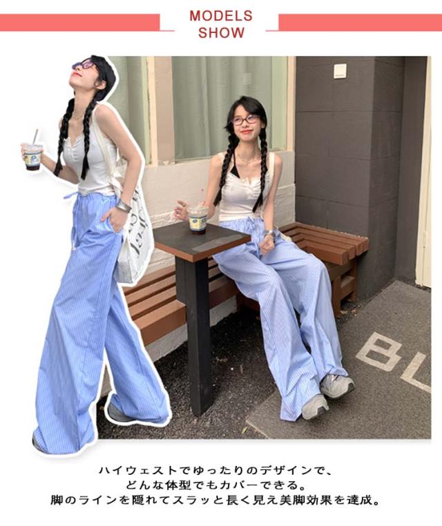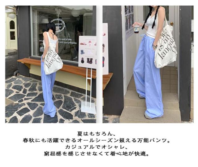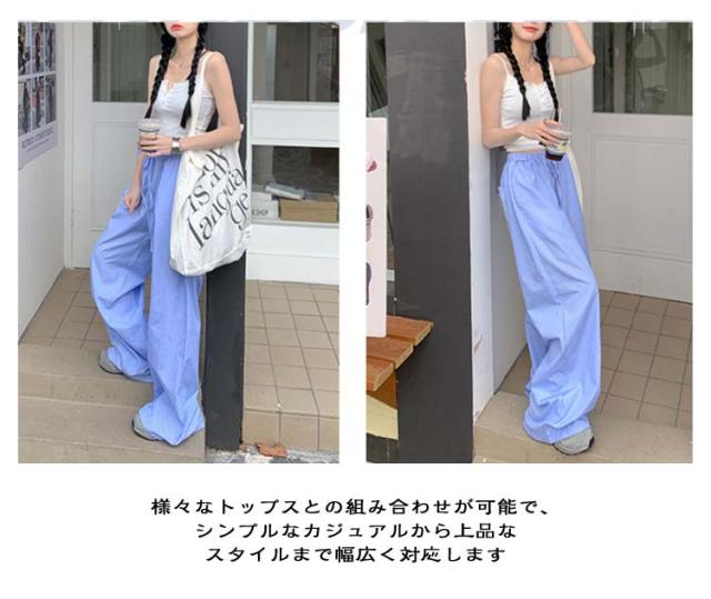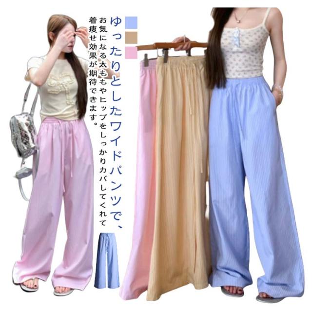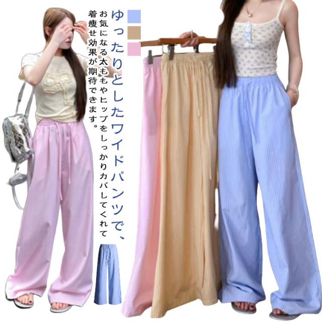 夏 体型カバー 春 ワイドパンツ ロングパンツ 春夏 ロング丈 レディース ワイドパンツ バギーパンツ ストライプパンツ 夏服 ワイドルーズ 可愛い きれいめ パンツ 薄手 長ズボン ワイド ゴム ロング パンツ ズボン 大きいサイズ おしゃれ カジュアル 通勤