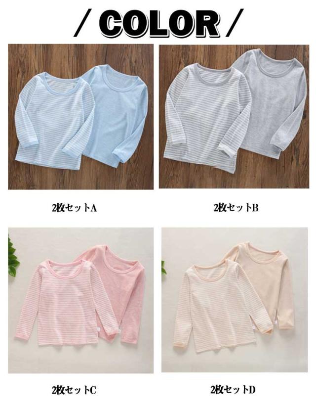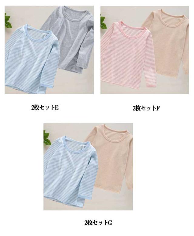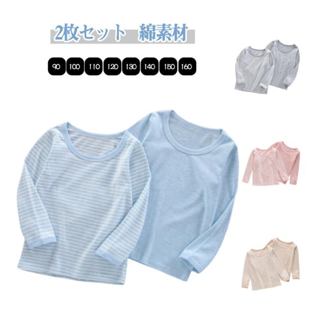 部屋着 140 【2枚セット】キッズ 女の子 パジャマ コットン 長袖 子供 120 小学校 小学生 綿 ボーダー柄 カットソー ロンT 無地 【2枚セット】キッズ 通学 通園 90 100 110 Tシャツ 130 ジュニア 150 160cm 肌着 インナーシャツ